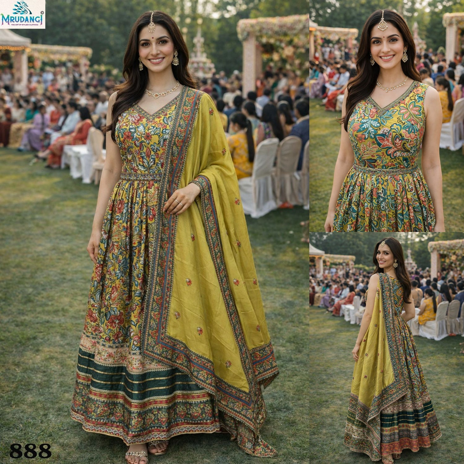888 Muskan Mrudangi Dola Silk Gown Dupatta Set