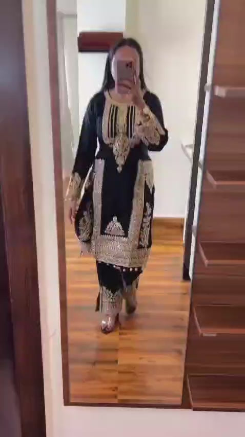- Fabric Detail: Top : Chinon Silk Embroidery Sequence Cording Work Round Neck Full Sleeves, Length : 42 Apx, , Bottom : Chinnon Silk Embroidery Sequence Cording Work, Length : 40 Apx, Size : 2Xl , Dupatta : Chinon Silk Embroidery Sequence Work, Length : 2.2 Mtr , Top Size : M, L, Xl, 2Xl