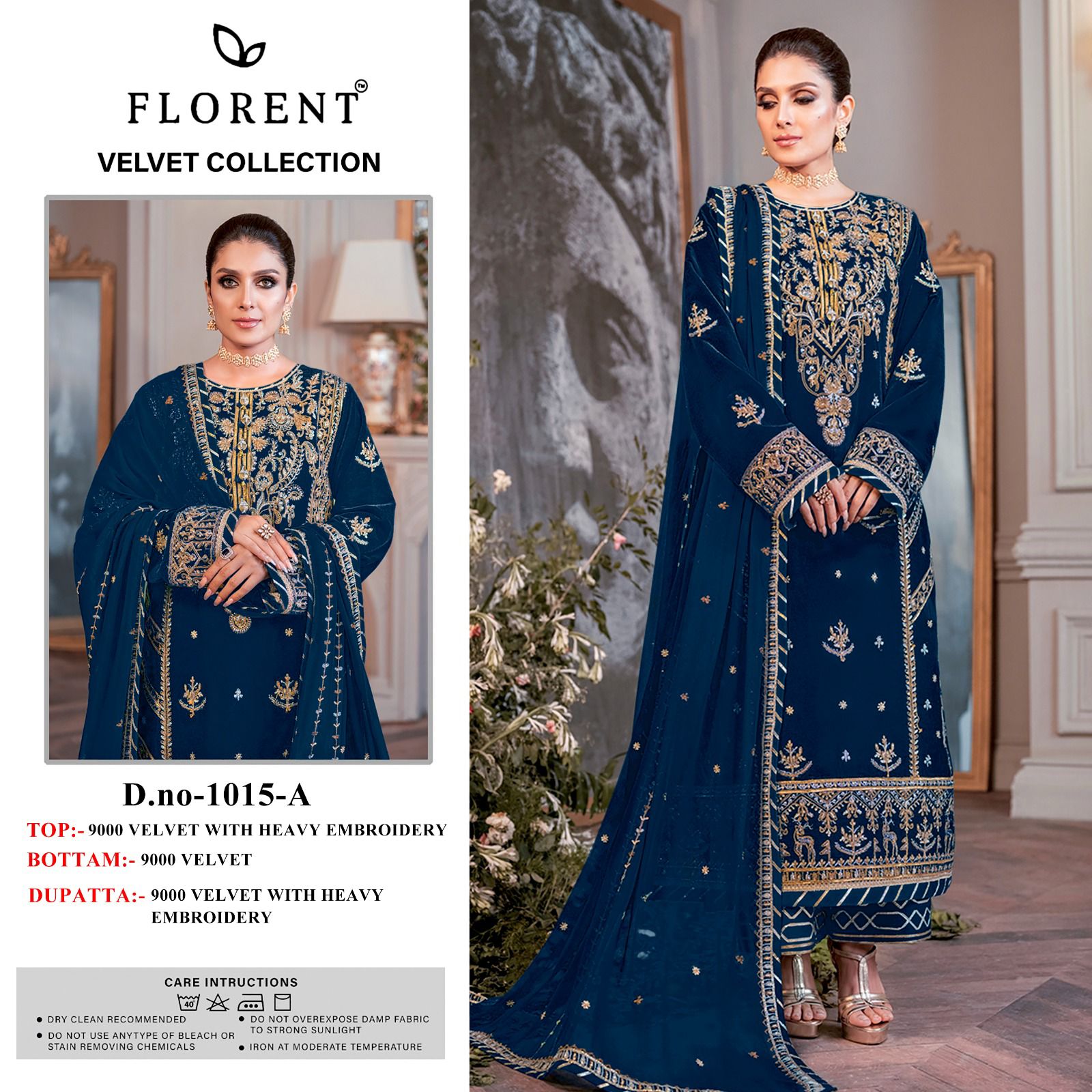 - 1015A Florent Embroidery Velvet Suits Dealer Ahmedabad Surat Wholesale Gujarat India Lowest Price Best Quality Buy Purchase Shipping Kurta Salwaar Kameez Also free Cash on delivery