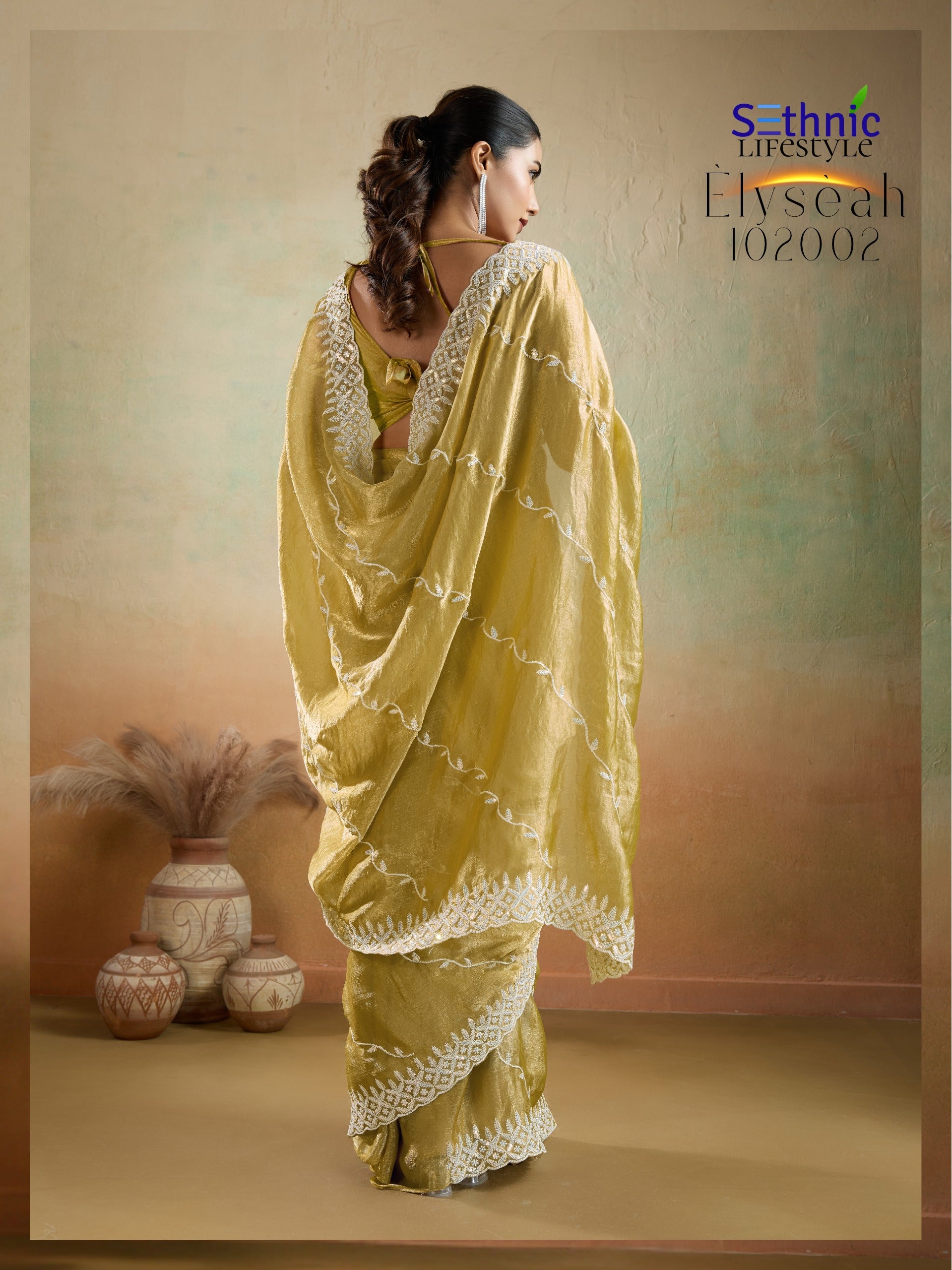 102002 Elyseah Sethnic Velvet Chiffon Sarees