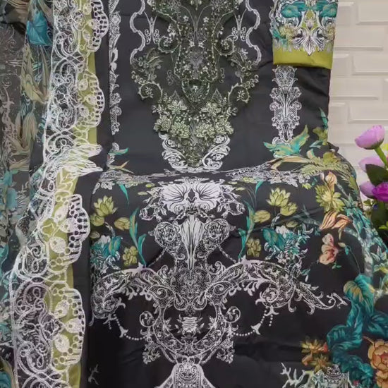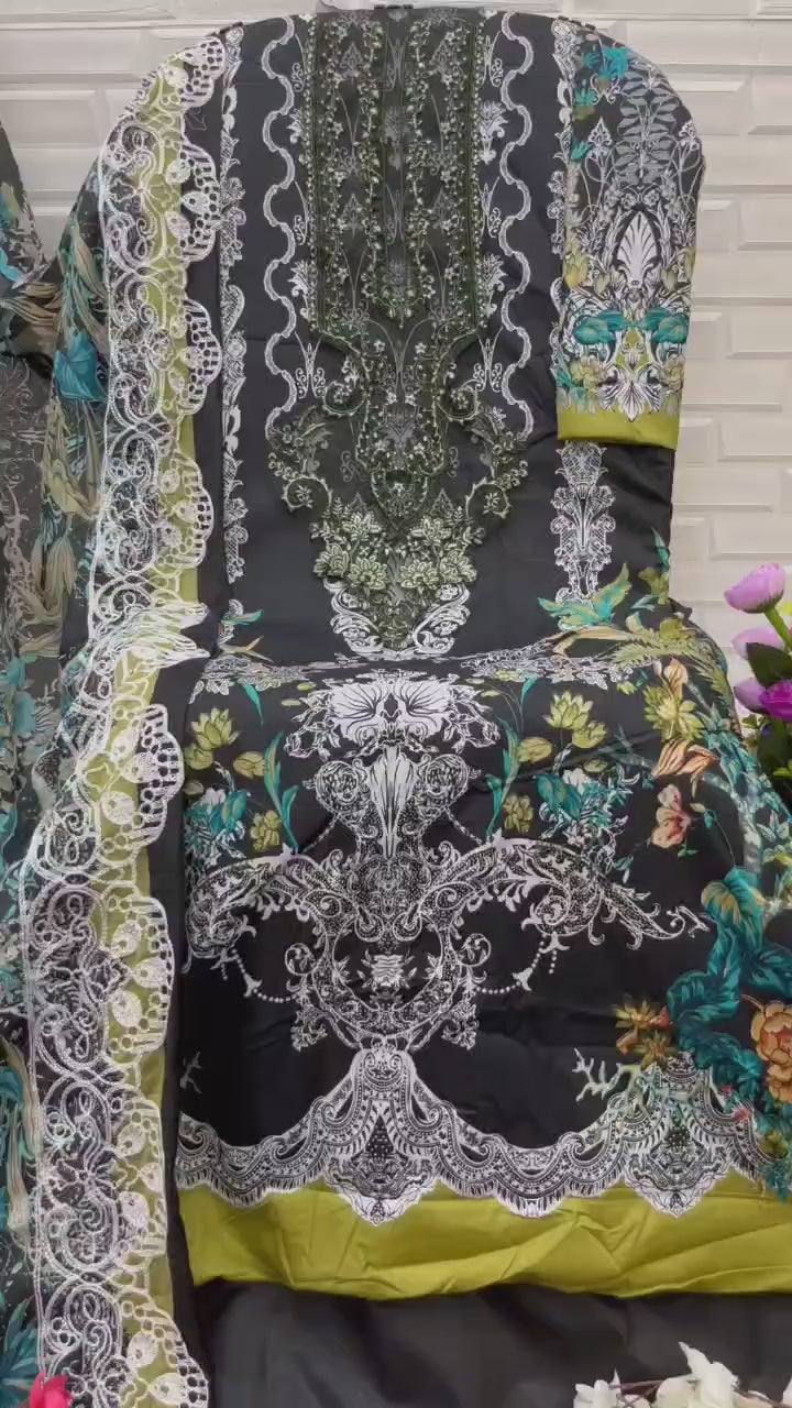 - Fabric Detail: Top : Pure Cotton With Heavy Embroidery Patches , Bottom : Cotton Solid Print , Choose Dupatta : Chiffon Printed And Cotton Printed , Dupatta And Rate : Chiffon Printed : 575 And Cotton Printed : 625