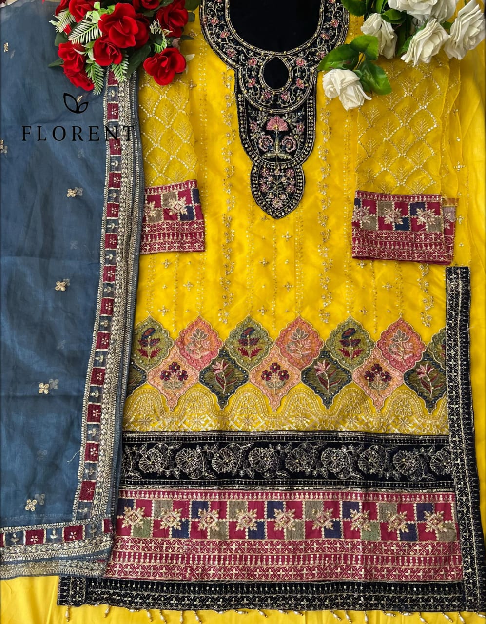 - 1027D Florent Embroidery Pakistani Salwar Suits Dealer Ahmedabad Surat Wholesale Gujarat India Lowest Price Best Quality Buy Purchase Shipping Kurta Salwaar Kameez Also free Cash on delivery