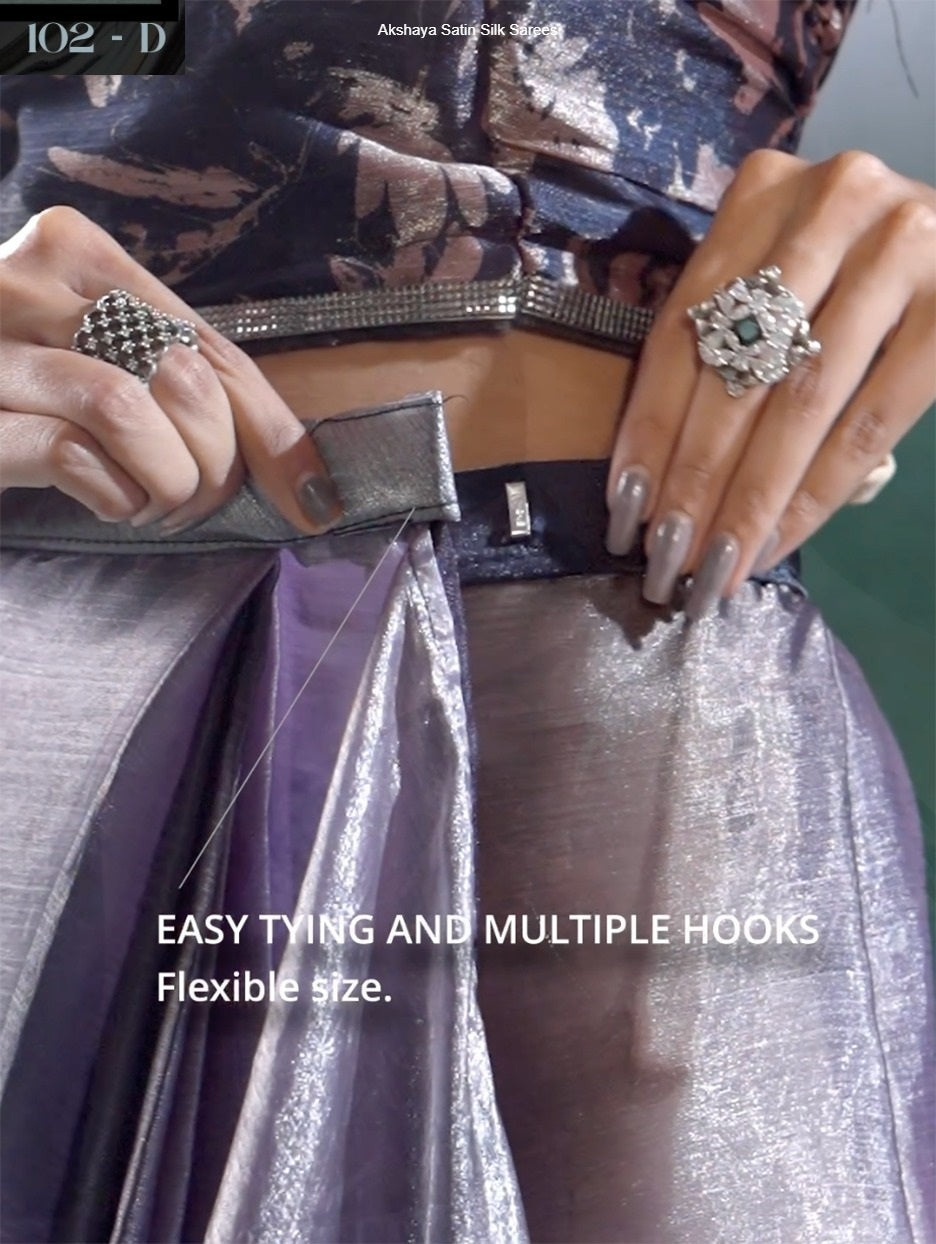 - Fabric Detail: Saree : Satin Silk Readymade , Blouse : Satin Silk Unstitched , , Saree Size : 28 Stretched Upto 36