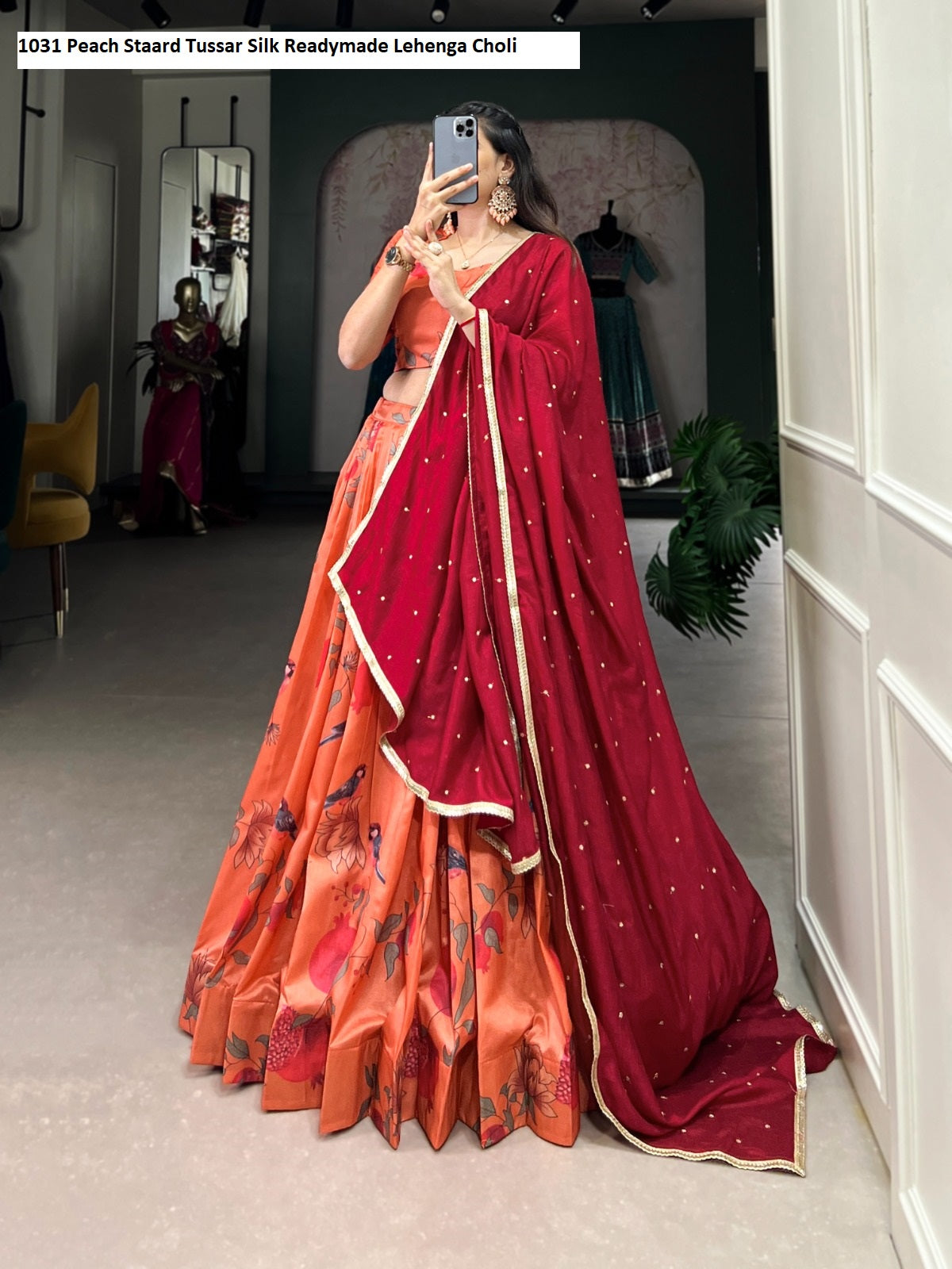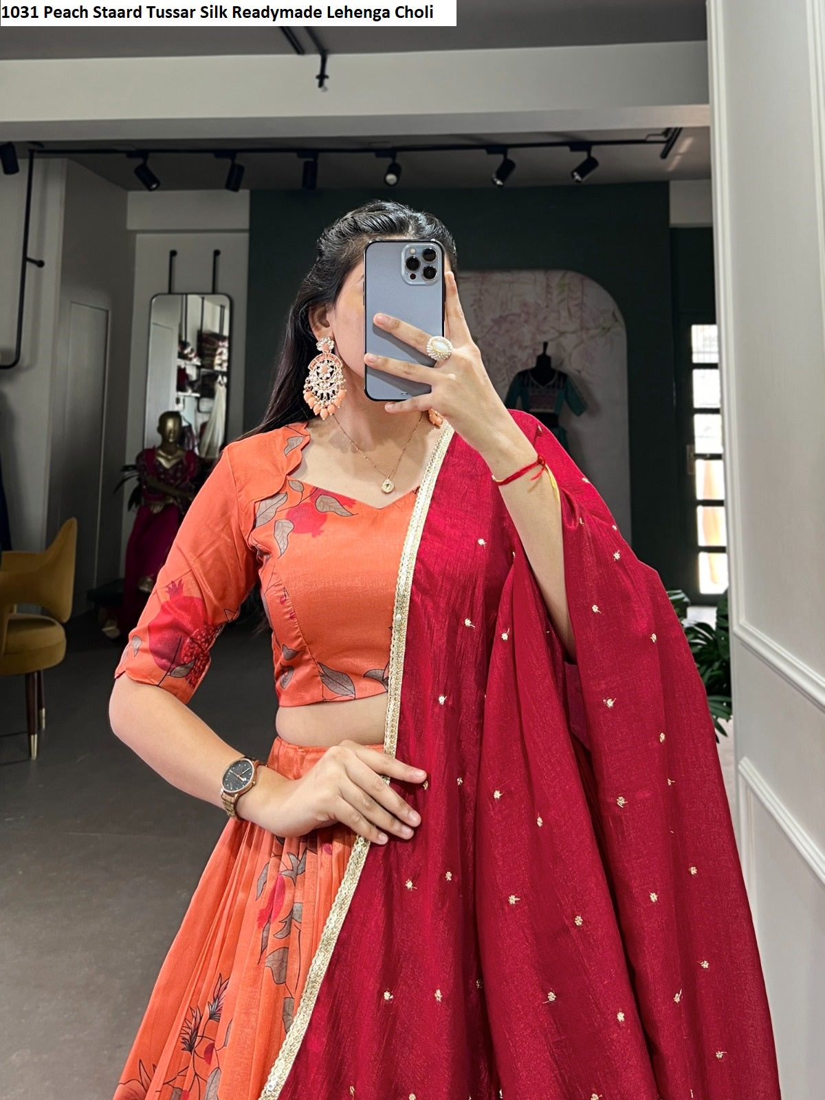 1031 Peach Staard Tussar Silk Readymade Lehenga Choli