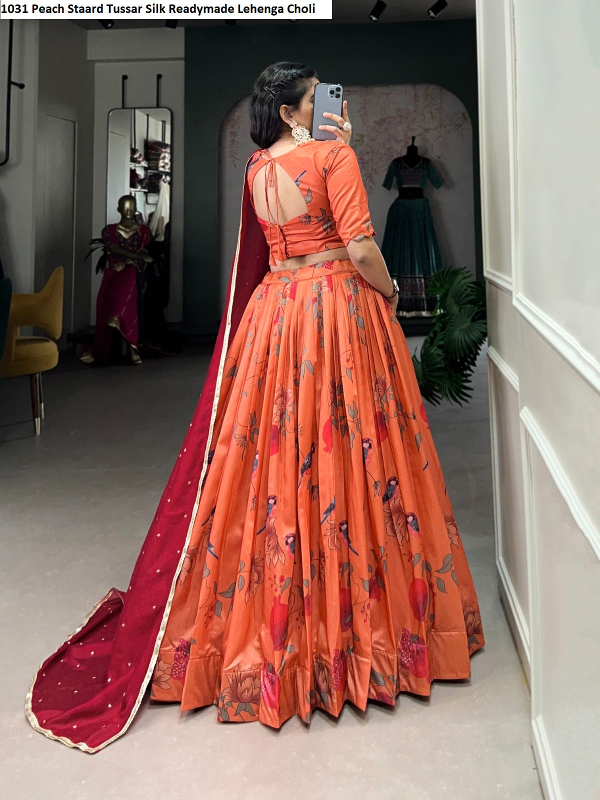 - 1031 Peach Staard Tussar Silk Readymade Lehenga Choli Dealer Ahmedabad Surat Wholesale Gujarat India Lowest Price Best Quality Buy Purchase Shipping Kurta Salwaar Kameez Also free Cash on delivery