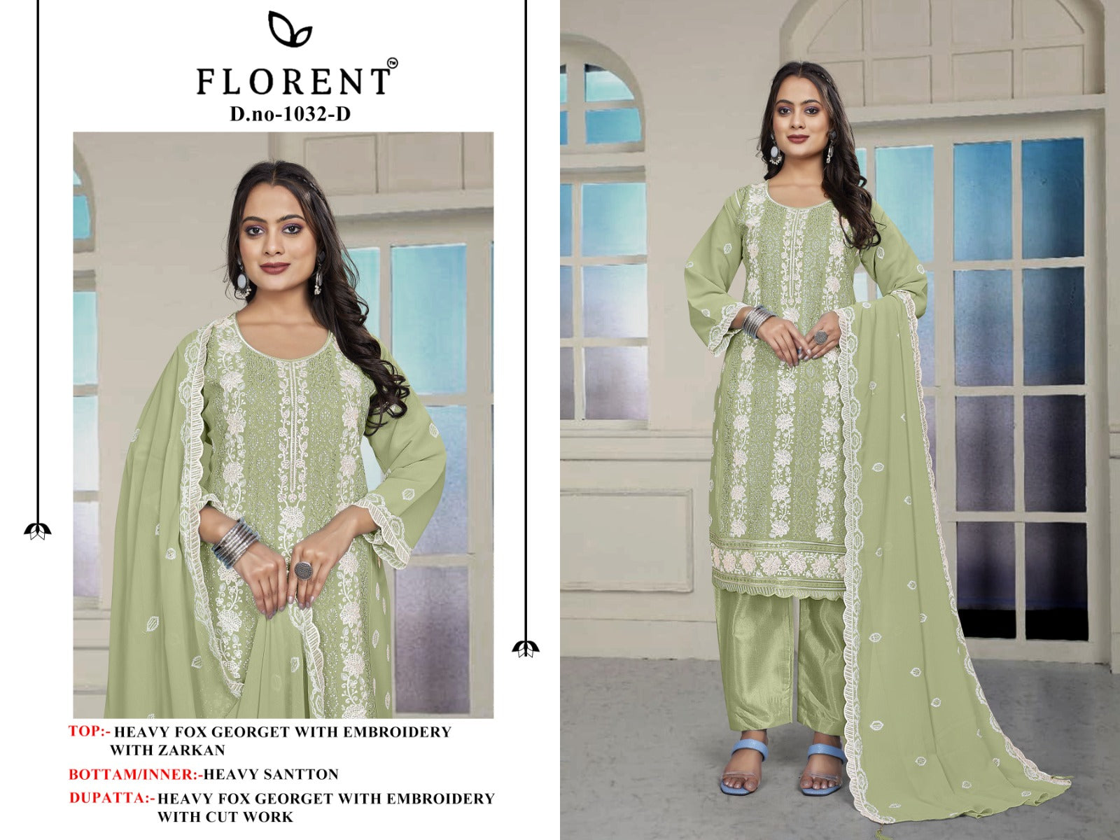 - 1032D Florent Embroidery Pakistani Salwar Suits Dealer Ahmedabad Surat Wholesale Gujarat India Lowest Price Best Quality Buy Purchase Shipping Kurta Salwaar Kameez Also free Cash on delivery