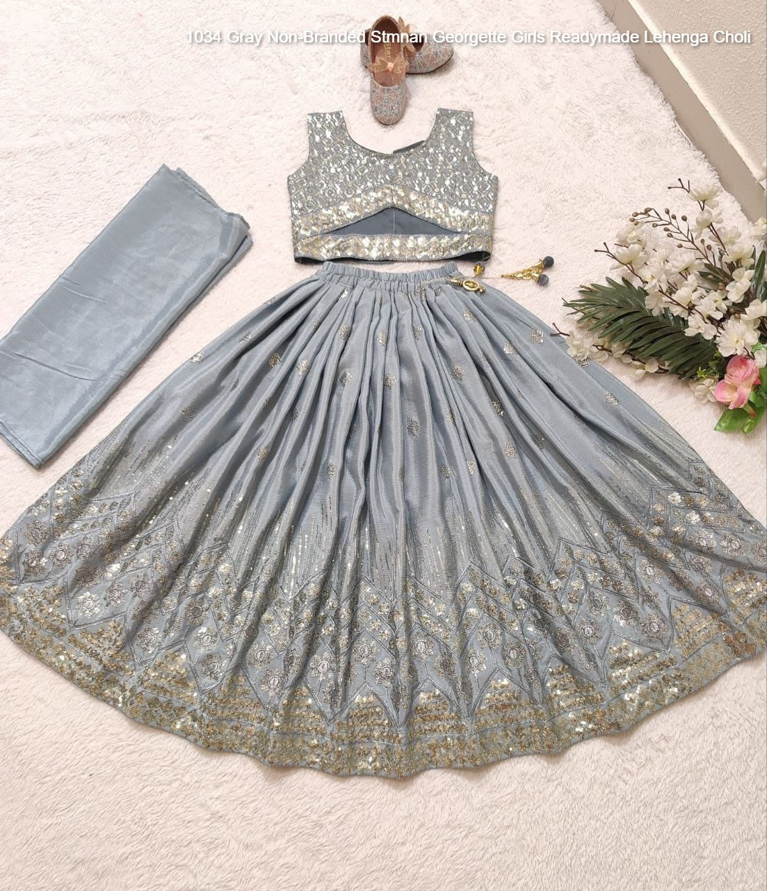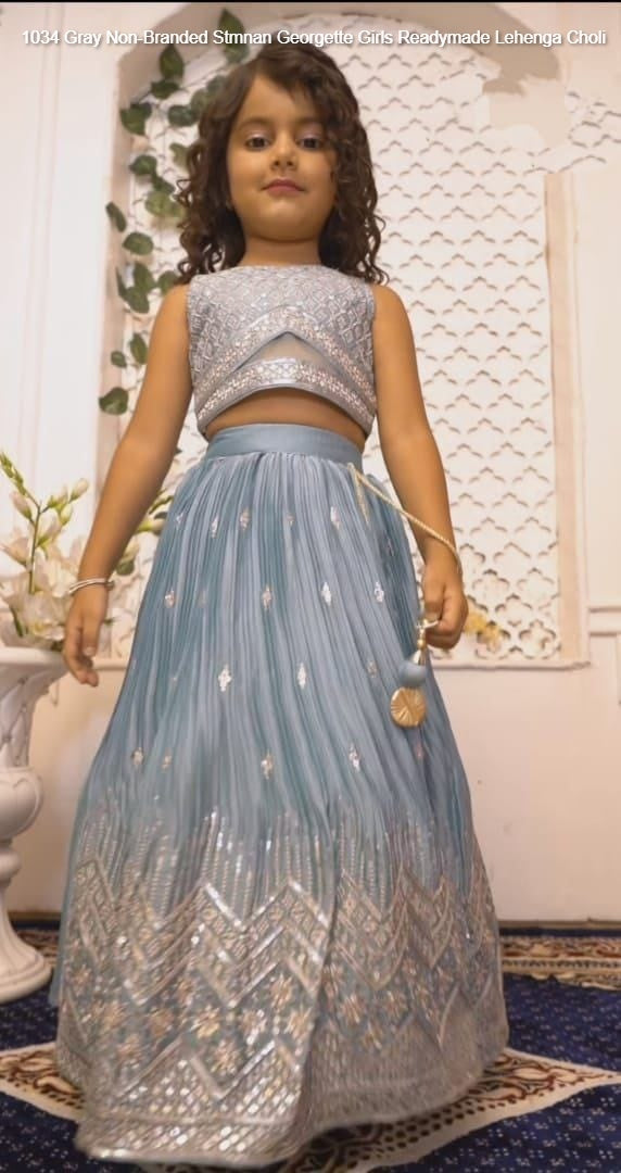 - 1034 Gray Non-Branded Stmnan Georgette Girls Readymade Lehenga Choli Dealer Ahmedabad Surat Wholesale Gujarat India Lowest Price Best Quality Buy Purchase Shipping Kurta Salwaar Kameez Also free Cash on delivery