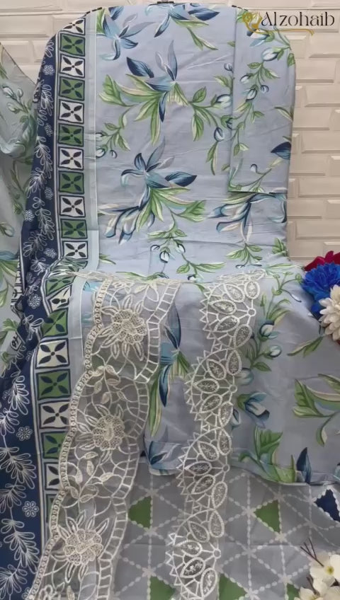 - Fabric Detail: Top : Pure Cotton Print With Embroidery Patches, Bottom : Semi Lawn With Print, Choose Dupatta : Chiffon Printed And Cotton Printed , Dupatta And Rate : Chiffon Printed : 549 And Cotton Printed : 599