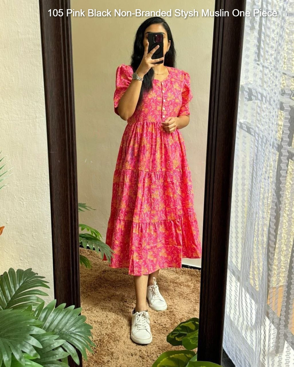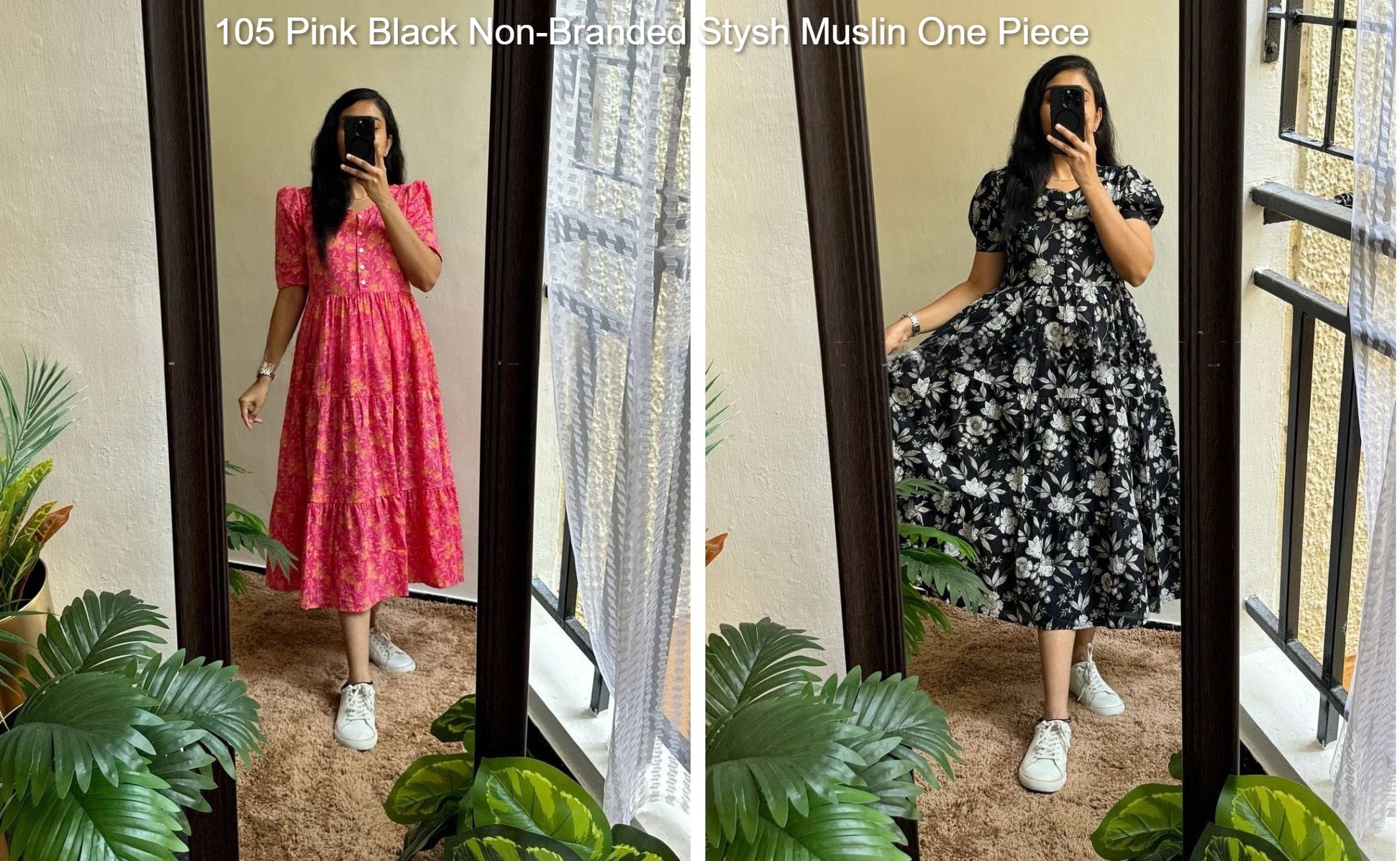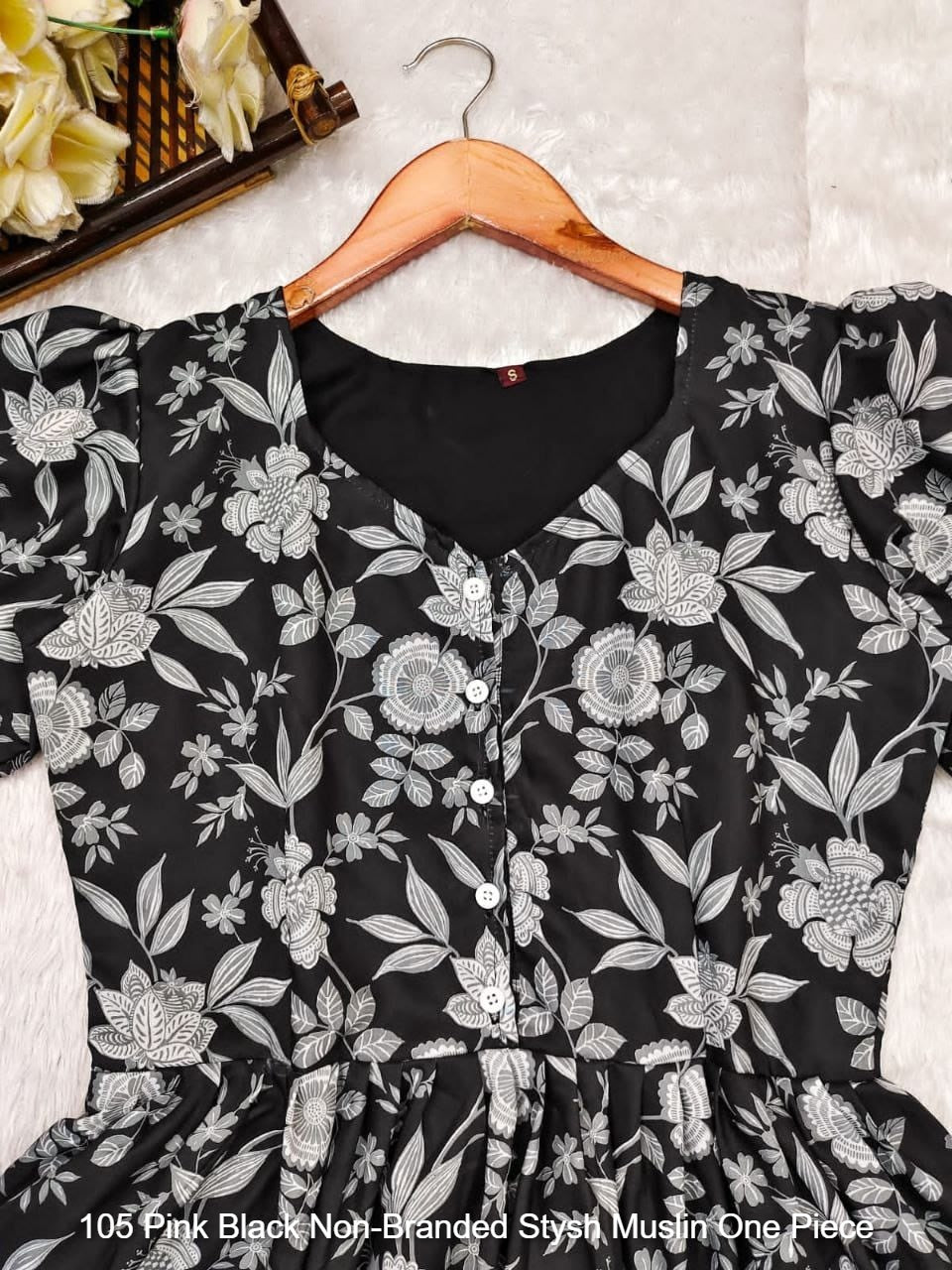 - 105 Pink Black Non-Branded Stysh Muslin One Piece Dealer Ahmedabad Surat Wholesale Gujarat India Lowest Price Best Quality Buy Purchase Shipping Kurta Salwaar Kameez Also free Cash on delivery