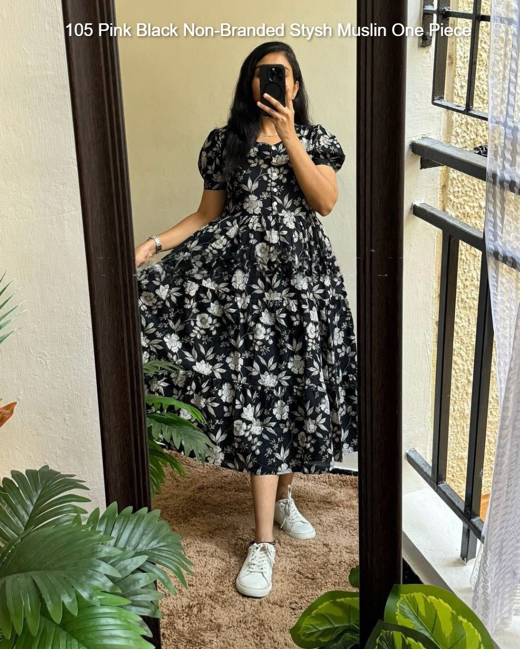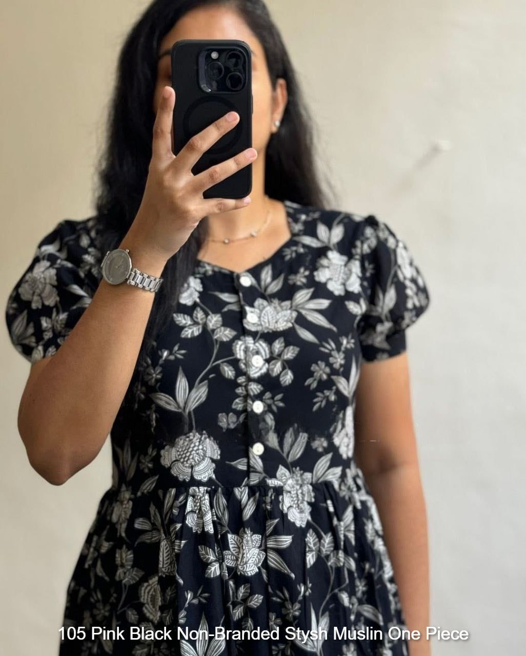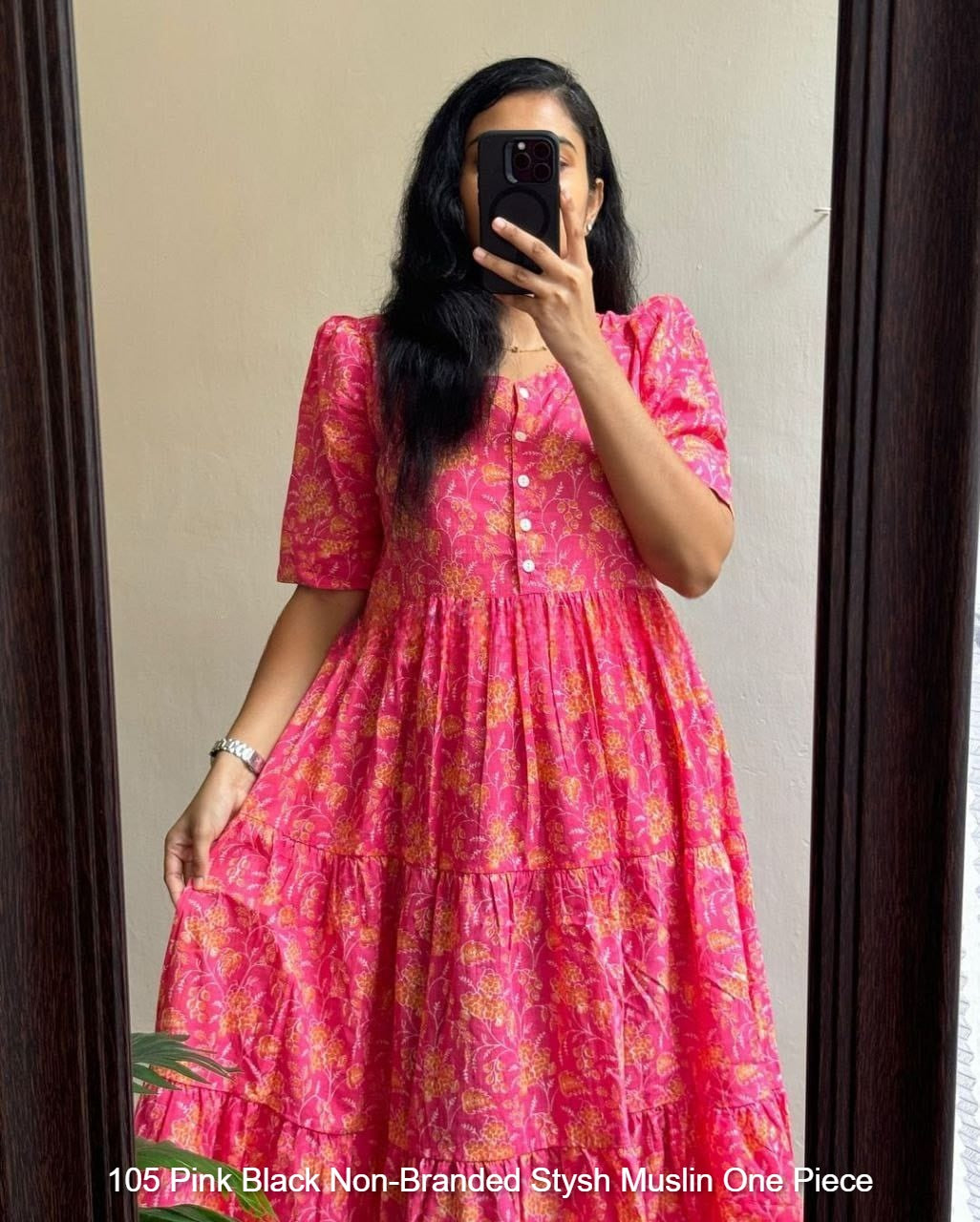 - 105 Pink Black Non-Branded Stysh Muslin One Piece Dealer Ahmedabad Surat Wholesale Gujarat India Lowest Price Best Quality Buy Purchase Shipping Kurta Salwaar Kameez Also free Cash on delivery