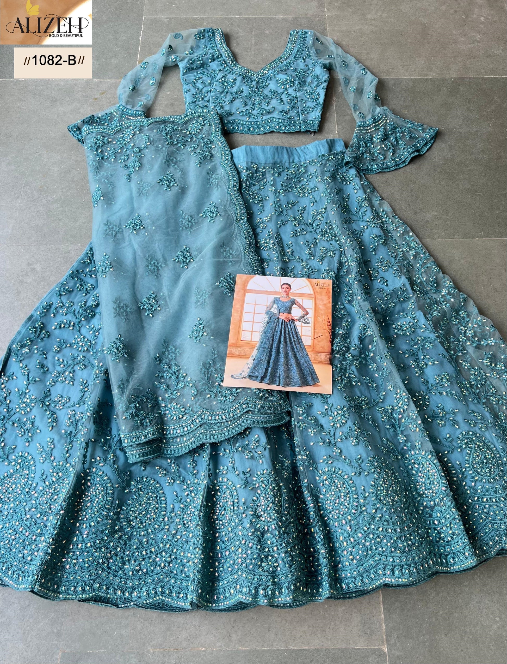 - 1082-B Alizeh Butterfly Net Lehenga Choli Dealer Ahmedabad Surat Wholesale Gujarat India Lowest Price Best Quality Buy Purchase Shipping Kurta Salwaar Kameez Also free Cash on delivery