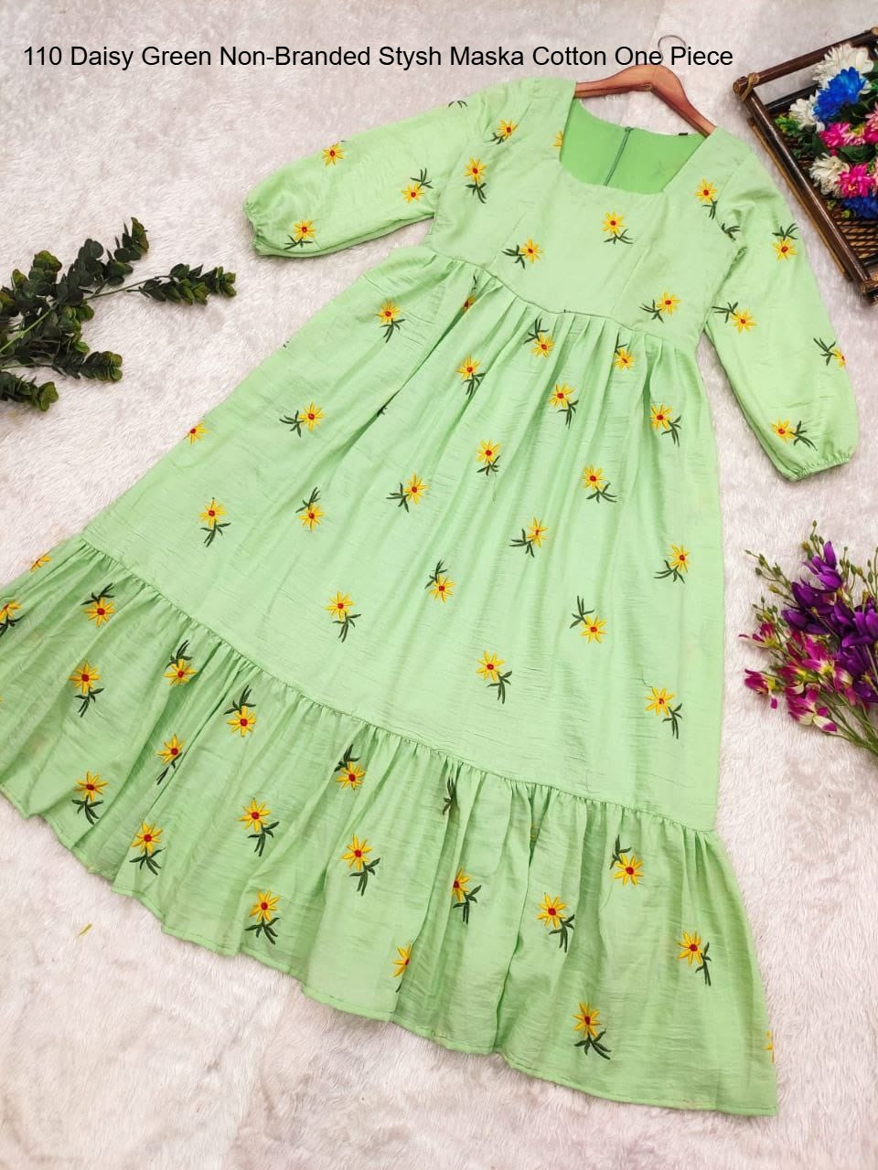 - 110 Daisy Green Non-Branded Stysh Maska Cotton One Piece Dealer Ahmedabad Surat Wholesale Gujarat India Lowest Price Best Quality Buy Purchase Shipping Kurta Salwaar Kameez Also free Cash on delivery