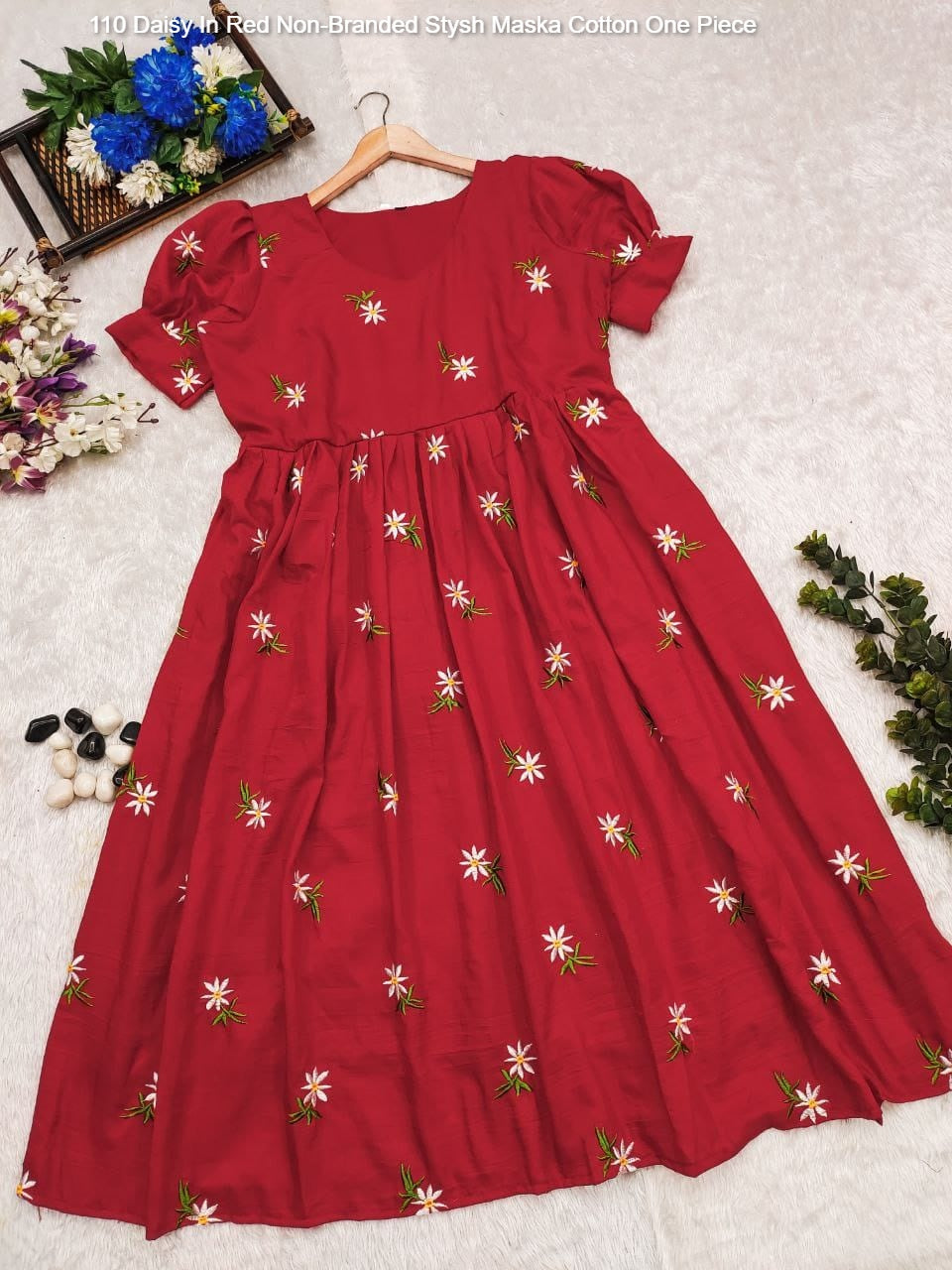 - 110 Daisy In Red Non-Branded Stysh Maska Cotton One Piece Dealer Ahmedabad Surat Wholesale Gujarat India Lowest Price Best Quality Buy Purchase Shipping Kurta Salwaar Kameez Also free Cash on delivery