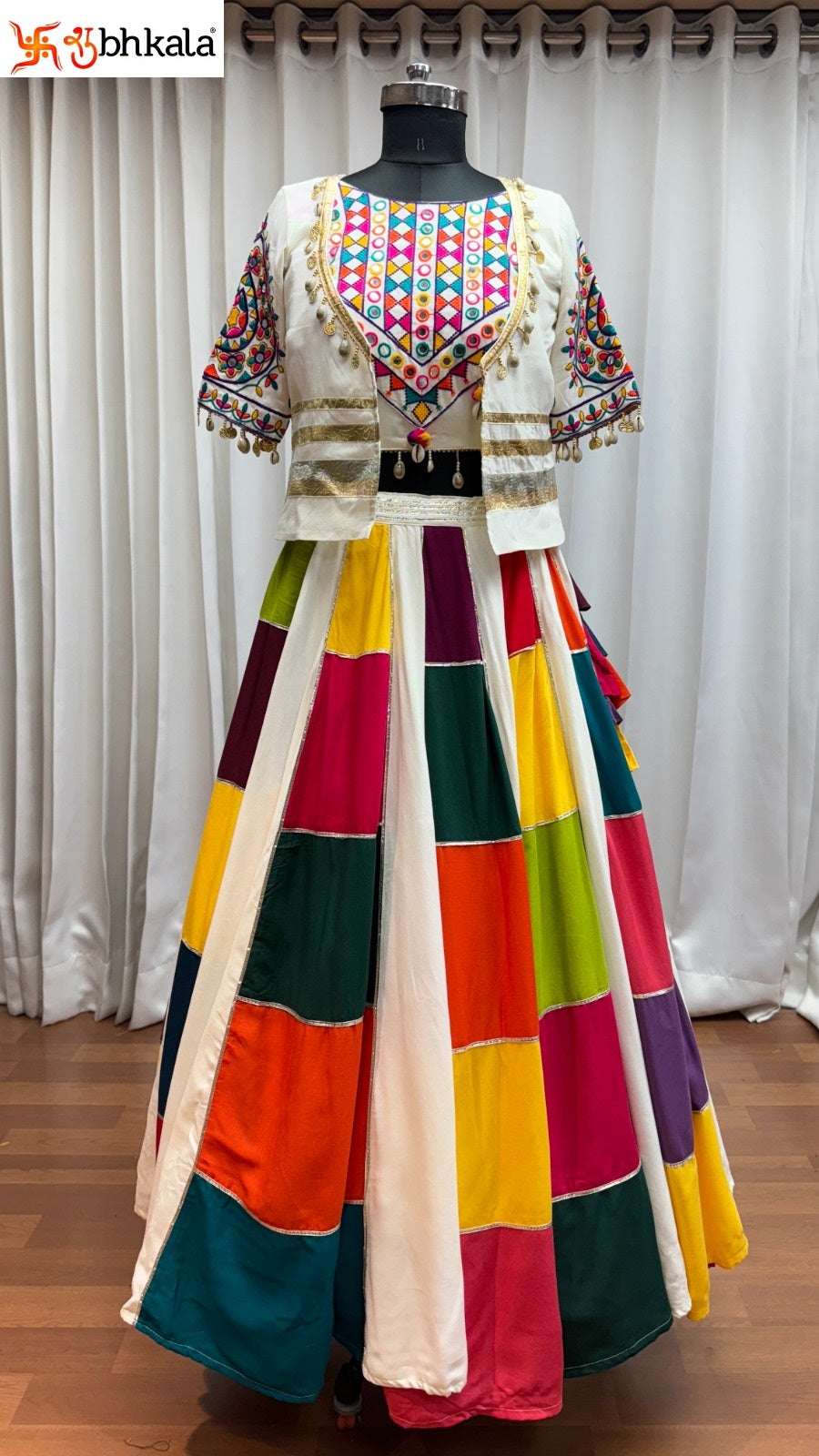 - Fabric Detail: Lehenga : Viscose Cotton Multi Colour Patch Work Stitching Pattern Length : 40 Apx, Waist : 42 Apx, Flair : 10 Mtr , Blouse : Viscose Cotton Kutchi Patch Work With All Over Mirror And Kodi On Border, Length : 15 Apx, Chest : 38 Apx M Size Stitched With Customis Up To 44 Inch , Jacket : Thread Mirror Kodi And Lampi Patta Work Detail,Length : 19 Apx ,
