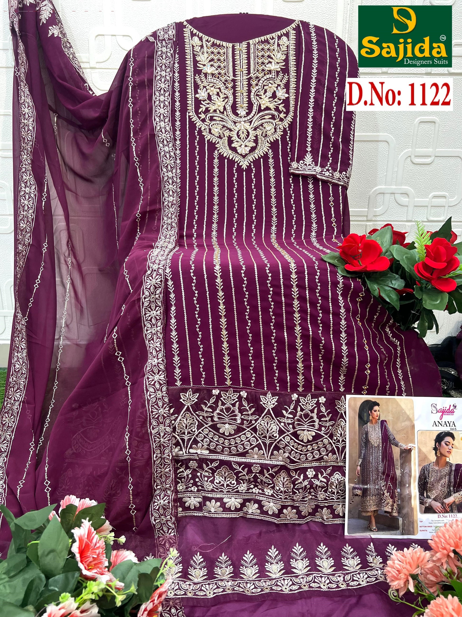 - 1122 Anaya Vol-5 Sajida Georgette Pakistani Salwar Suits Dealer Ahmedabad Surat Wholesale Gujarat India Lowest Price Best Quality Buy Purchase Shipping Kurta Salwaar Kameez Also free Cash on delivery
