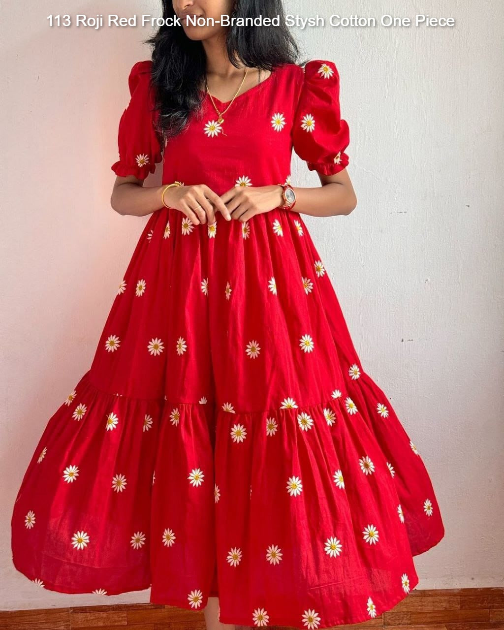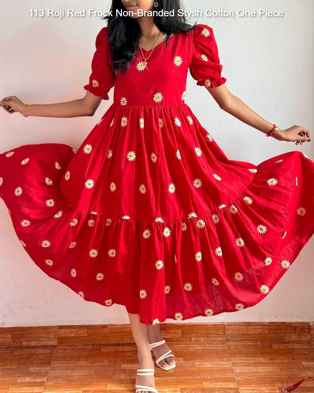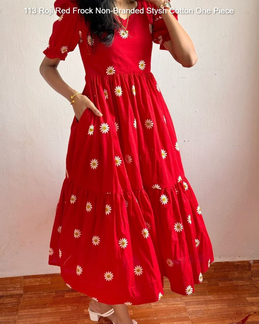 - 113 Roji Red Frock Non-Branded Stysh Cotton One Piece Dealer Ahmedabad Surat Wholesale Gujarat India Lowest Price Best Quality Buy Purchase Shipping Kurta Salwaar Kameez Also free Cash on delivery
