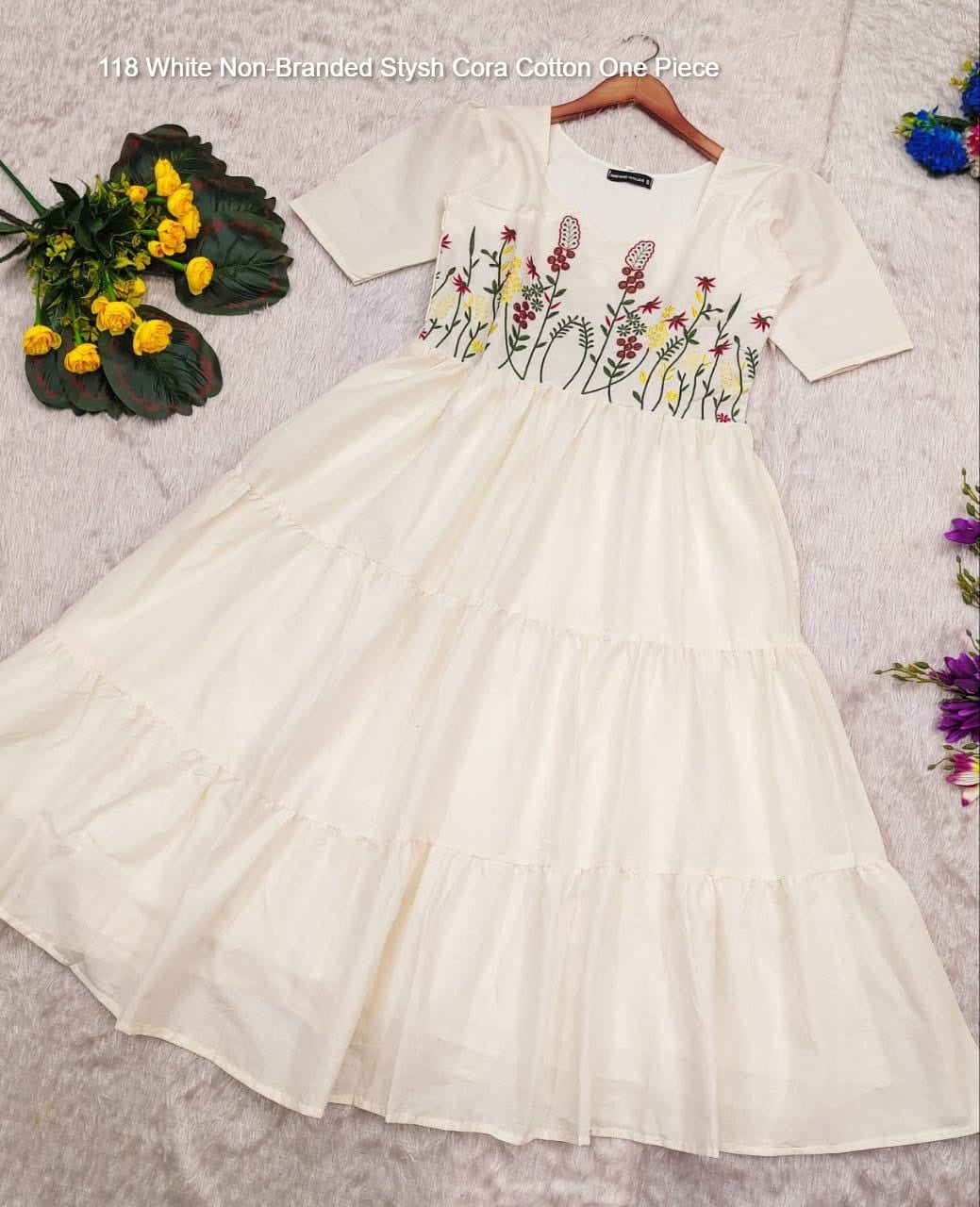 - 118 White Non-Branded Stysh Cora Cotton One Piece Dealer Ahmedabad Surat Wholesale Gujarat India Lowest Price Best Quality Buy Purchase Shipping Kurta Salwaar Kameez Also free Cash on delivery