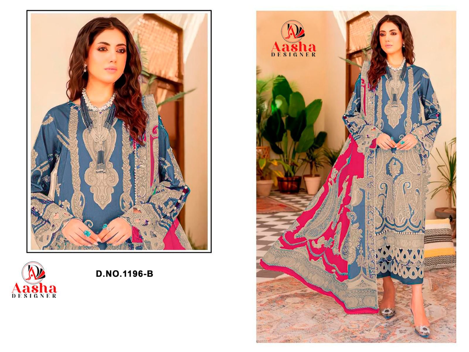 - 1196-B Aasha Designer Pure Cotton Pakistani Patch Suits Dealer Ahmedabad Surat Wholesale Gujarat India Lowest Price Best Quality Buy Purchase Shipping Kurta Salwaar Kameez Also free Cash on delivery