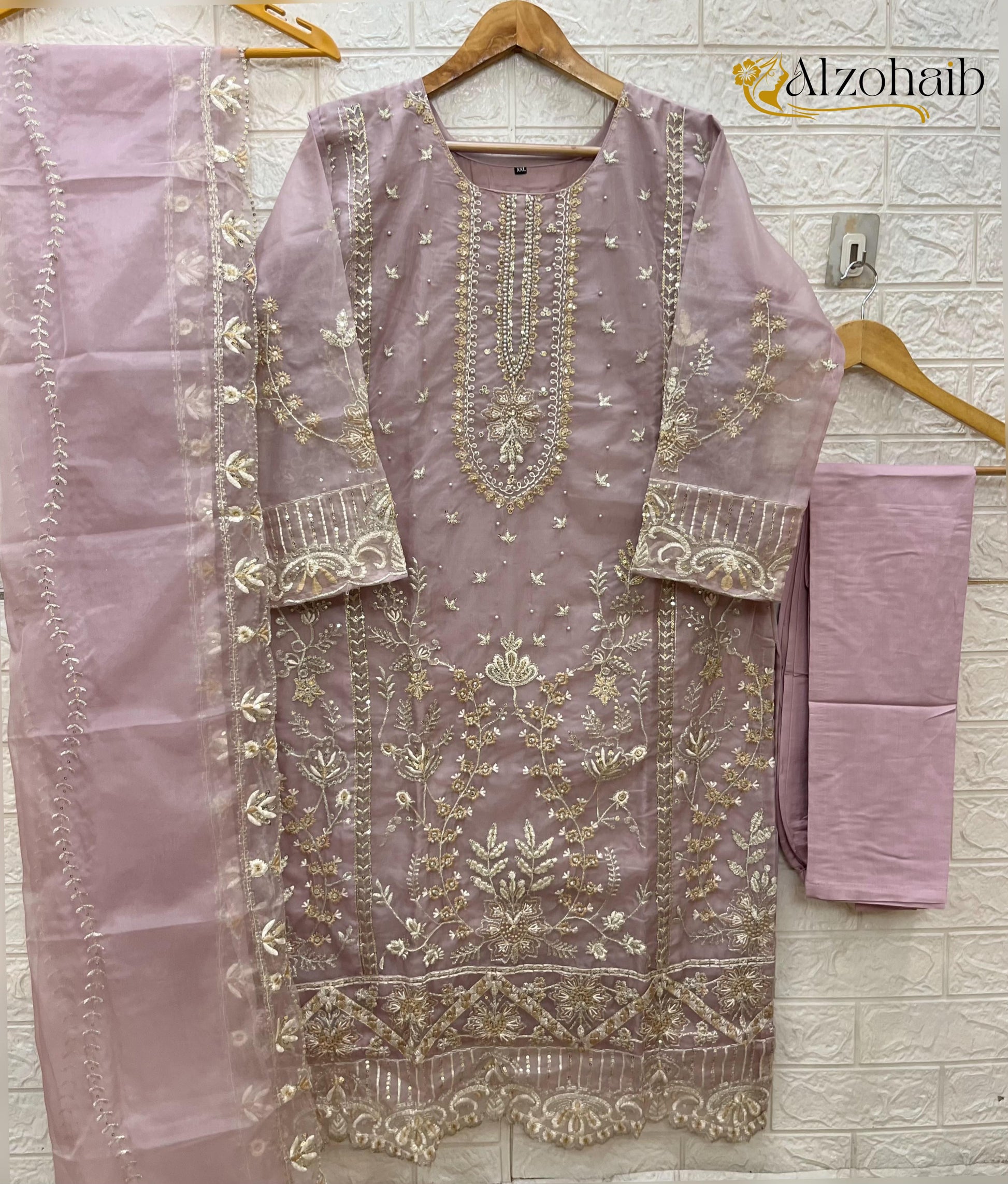 - Fabric Detail: Top : Organza With Work And Full Khatli Work Heavy Embroidery Geometric And Intricate Lattices , Bottom And Inner : Dull Santoon , Dupatta : Organza With Work ,