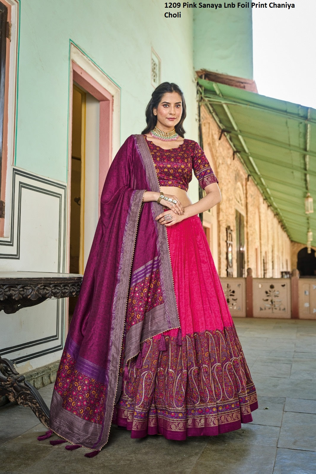 - 1209 Sanaya Pink Lnb Foil Print Chaniya Choli Dealer Ahmedabad Surat Wholesale Gujarat India Lowest Price Best Quality Buy Purchase Shipping Kurta Salwaar Kameez Also free Cash on delivery