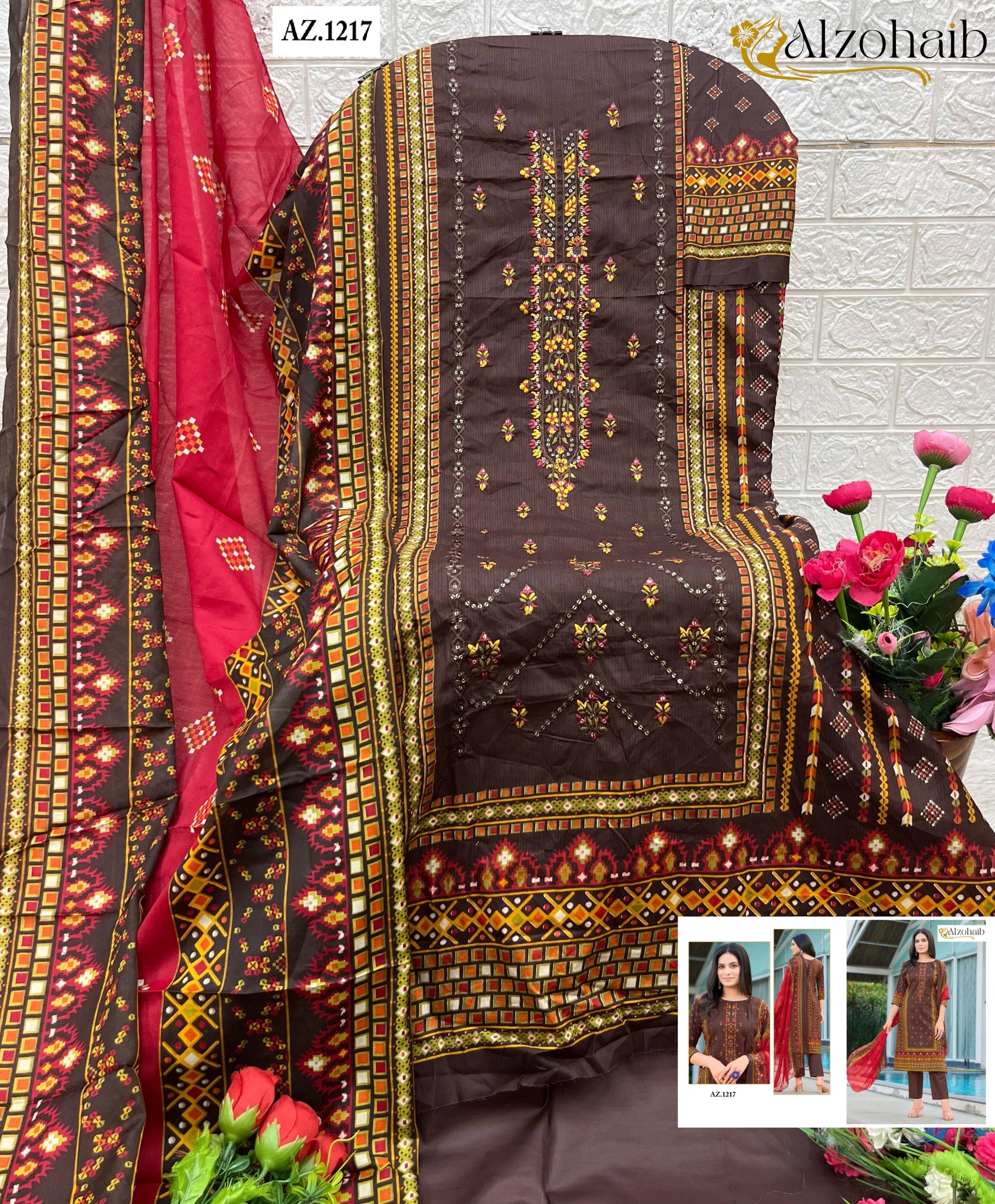 - 1217 Al Zohaib Printed Karachi Unstitched Suits Dealer Ahmedabad Surat Wholesale Gujarat India Lowest Price Best Quality Buy Purchase Shipping Kurta Salwaar Kameez Also free Cash on delivery