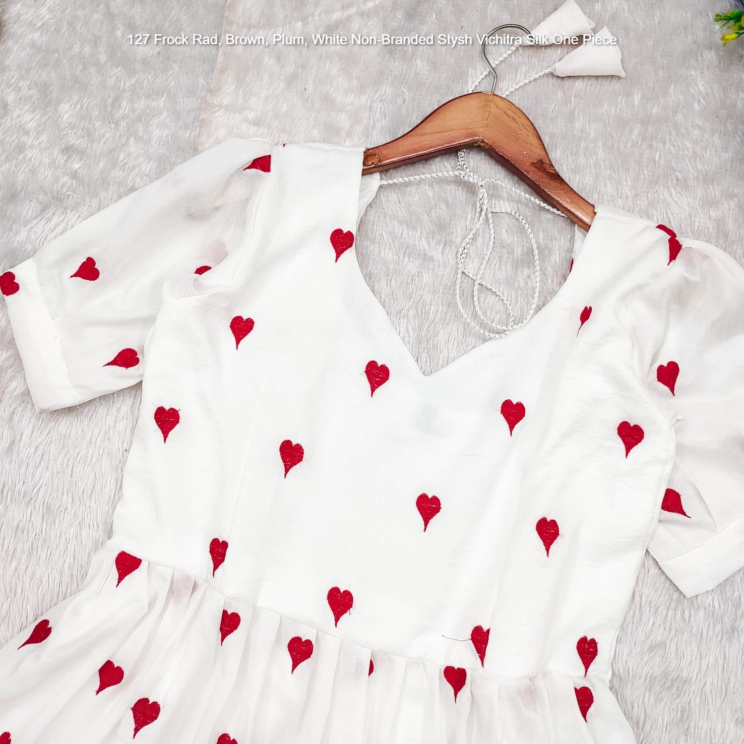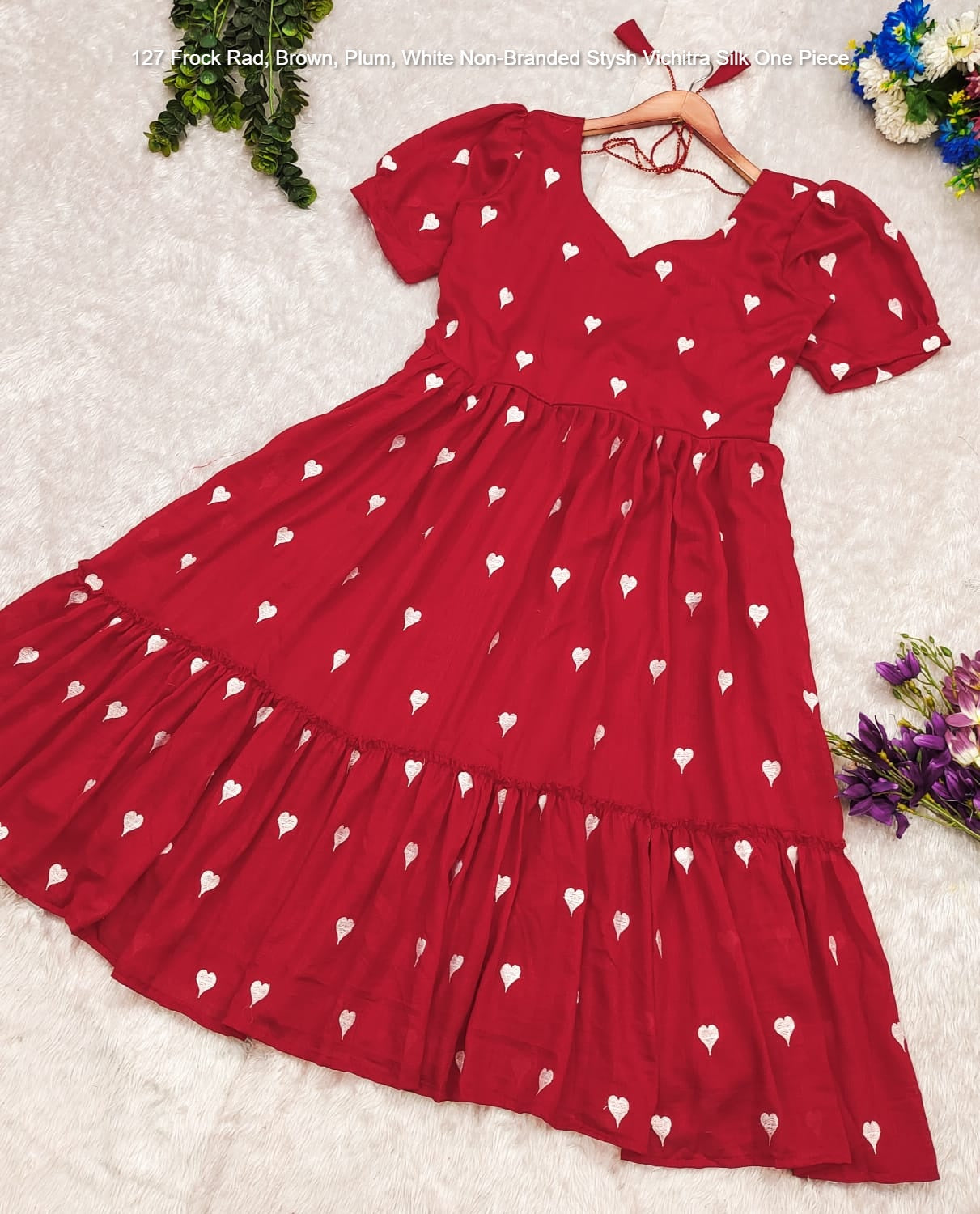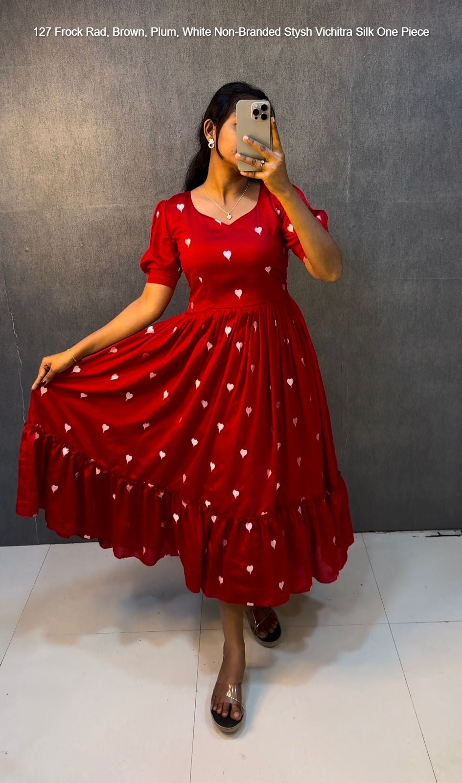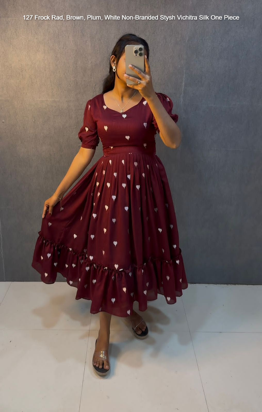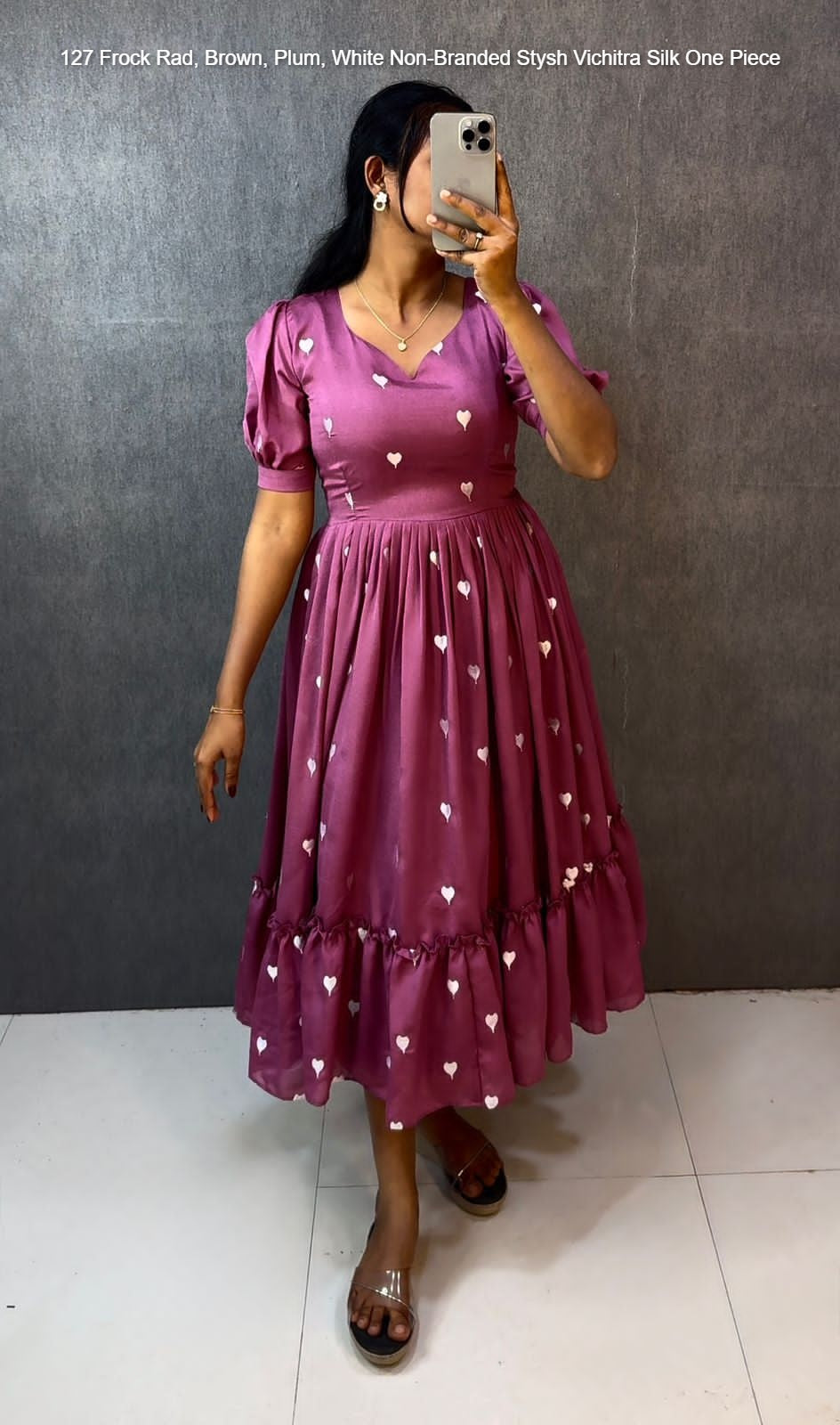 127 Frock Rad, Brown, Plum, White Non-Branded Stysh Vichitra Silk One Piece