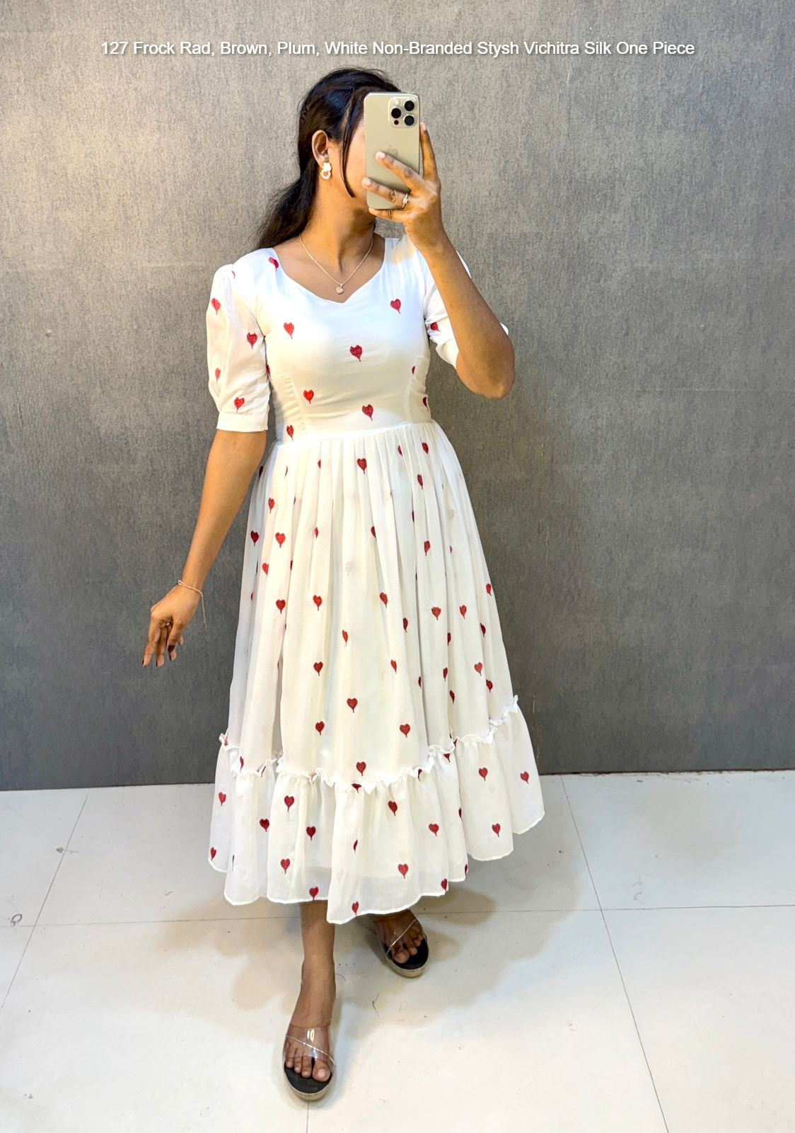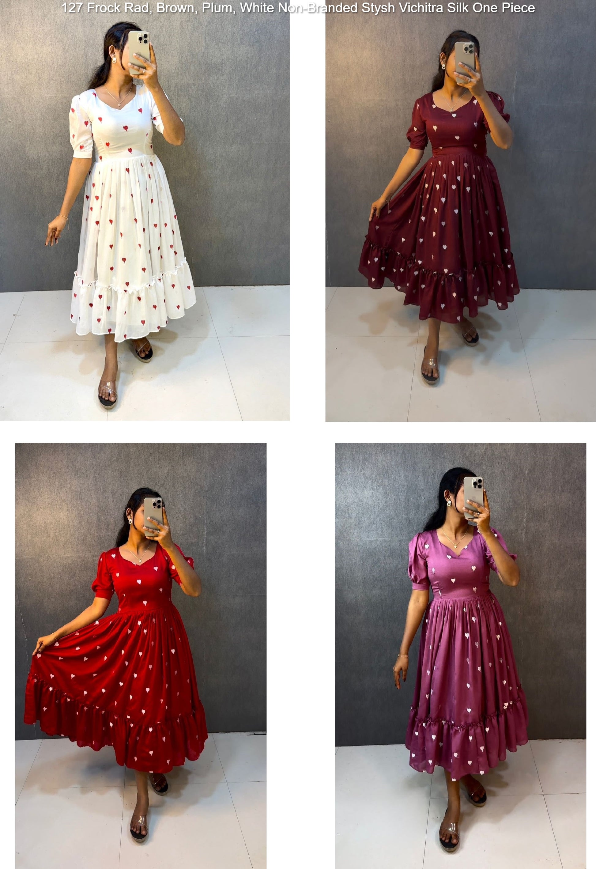 - 127 Frock Rad, Brown, Plum, White Non-Branded Stysh Vichitra Silk One Piece Dealer Ahmedabad Surat Wholesale Gujarat India Lowest Price Best Quality Buy Purchase Shipping Kurta Salwaar Kameez Also free Cash on delivery