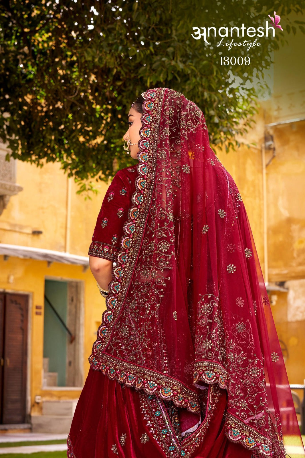 - 13009 Wedding Bride Vol 3 Anantesh Premium Velvet Bridal Lehenga Choli Dealer Ahmedabad Surat Wholesale Gujarat India Lowest Price Best Quality Buy Purchase Shipping Kurta Salwaar Kameez Also free Cash on delivery