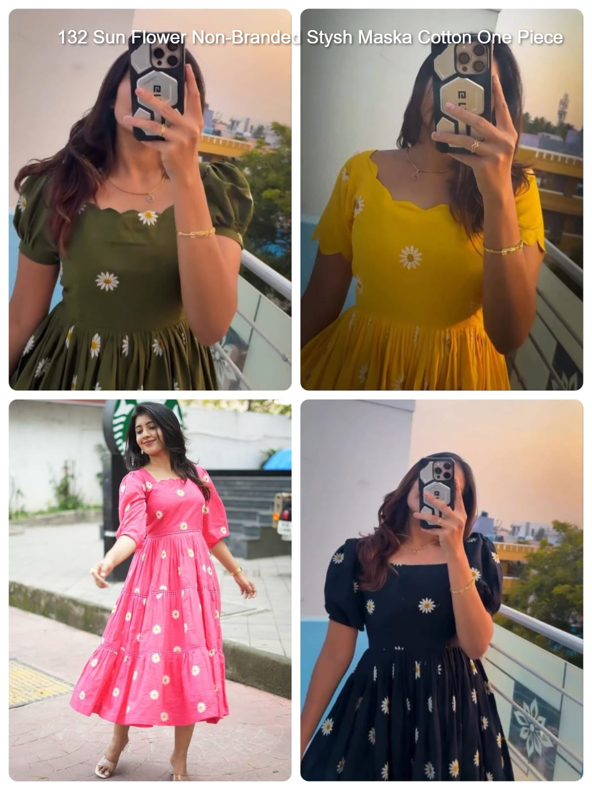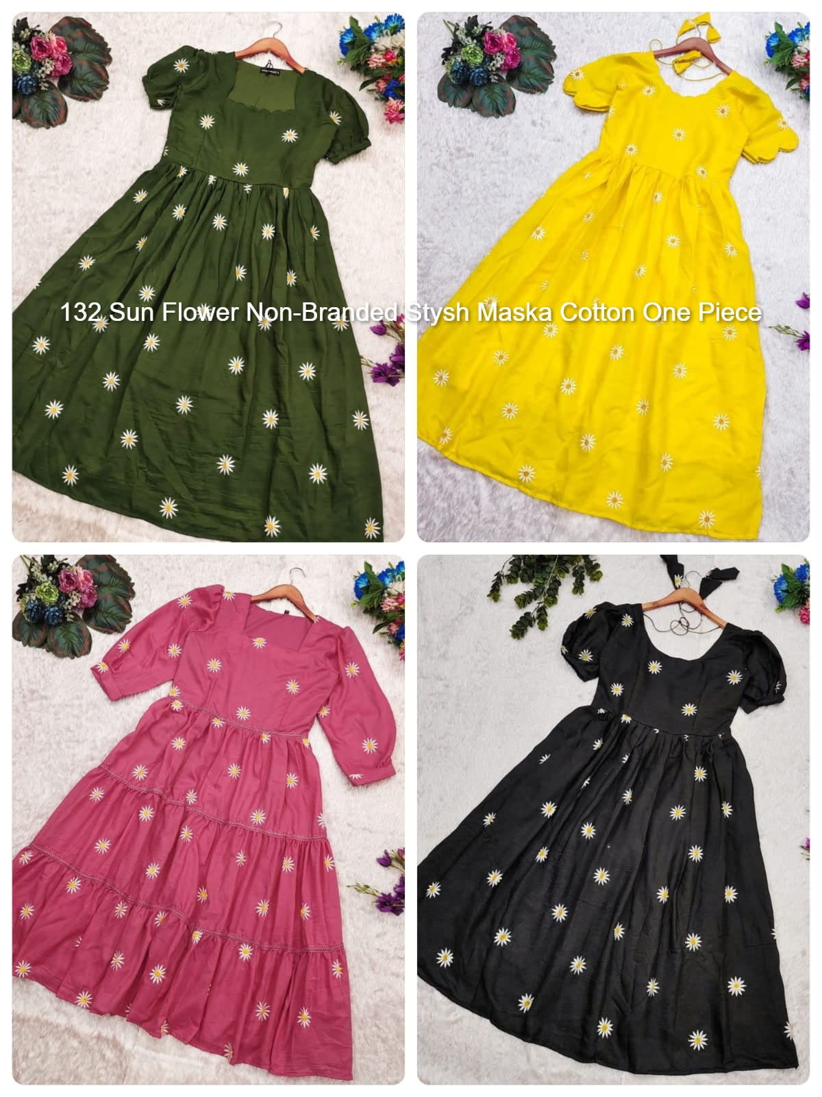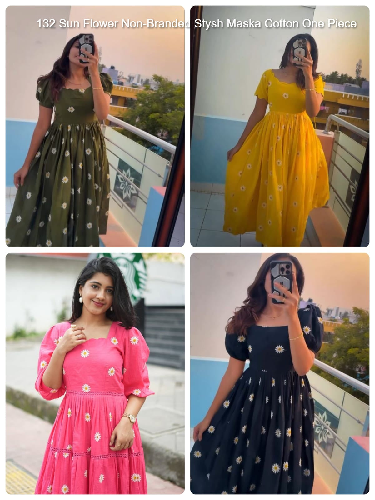 - 132 Sun Flower Non-Branded Stysh Maska Cotton One Piece Dealer Ahmedabad Surat Wholesale Gujarat India Lowest Price Best Quality Buy Purchase Shipping Kurta Salwaar Kameez Also free Cash on delivery