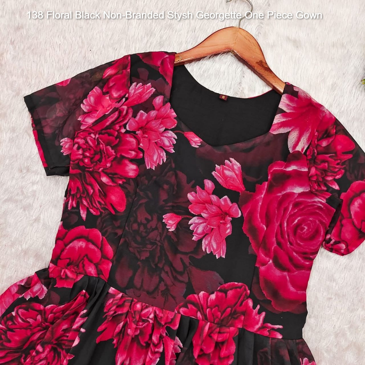 138 Floral Black Non-Branded Stysh Georgette One Piece Gown