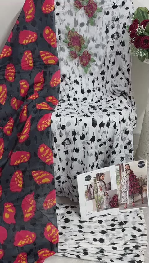 - Fabric Detail: Top : Pure Cotton Print With Heavy Embroidery Exclusive Two Patches , Bottom : Lawn Printed , Choose Dupatta : Chiffon Printed And Cotton Printed , Dupatta And Rate : Chiffon Printed : 515 And Cotton Printed : 565