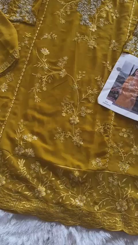 - Fabric Detail: Top : Georgette With Embroidery Work And Hand Work Full Heavy Work, Bottom : Santoon , Dupatta : Georgette With Heavy Embroidery Work ,