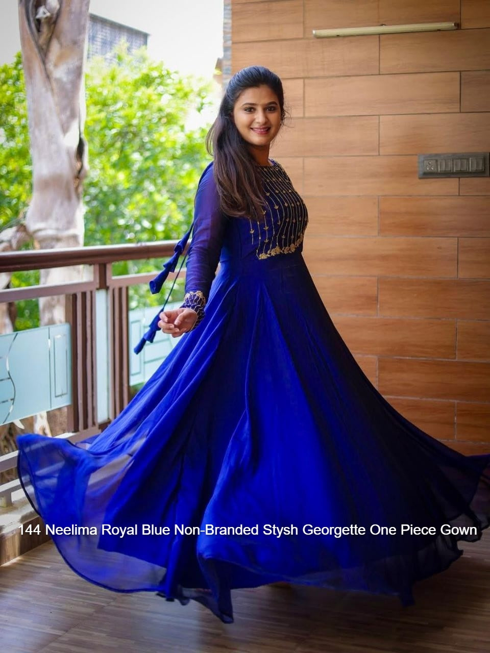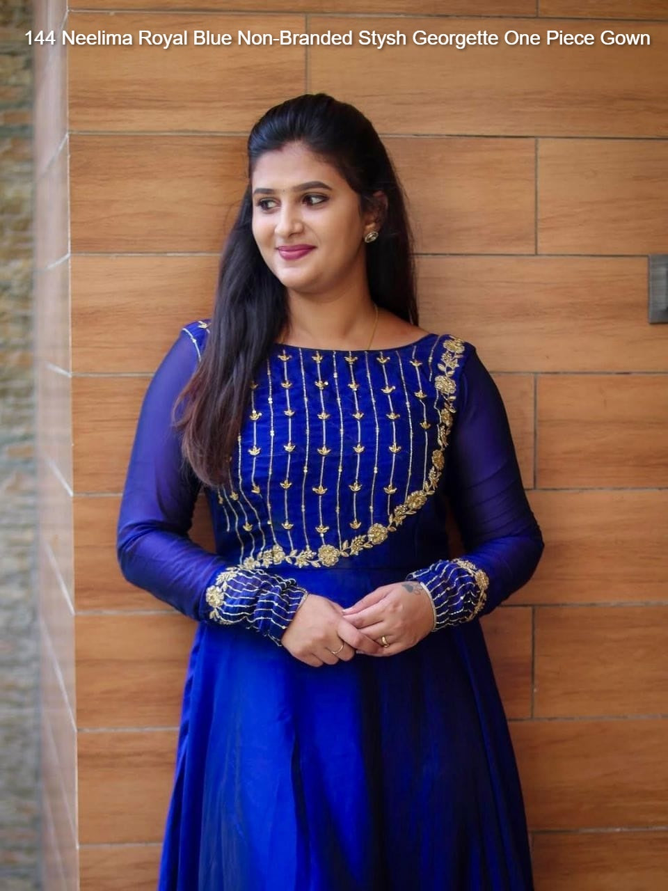144 Neelima Royal Blue Non-Branded Stysh Georgette One Piece Gown