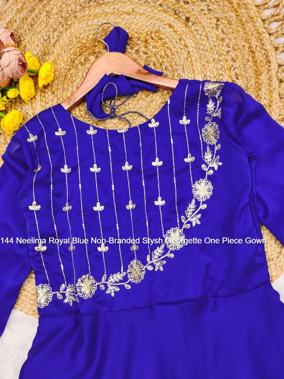 - 144 Neelima Royal Blue Non-Branded Stysh Georgette One Piece Gown Dealer Ahmedabad Surat Wholesale Gujarat India Lowest Price Best Quality Buy Purchase Shipping Kurta Salwaar Kameez Also free Cash on delivery