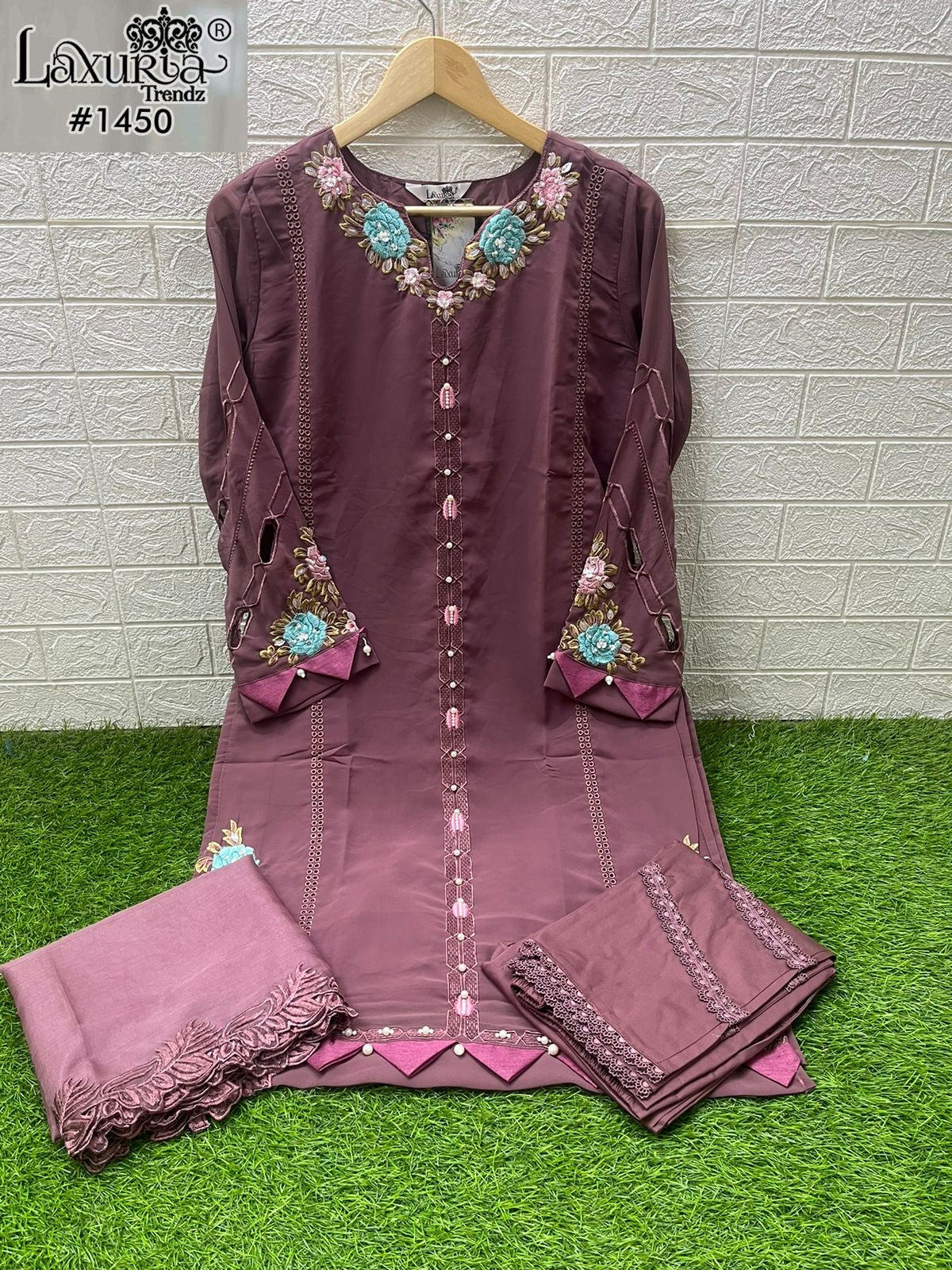 1450 Wine Laxuria Trendz Embroidery Pakistani Readymade Suits