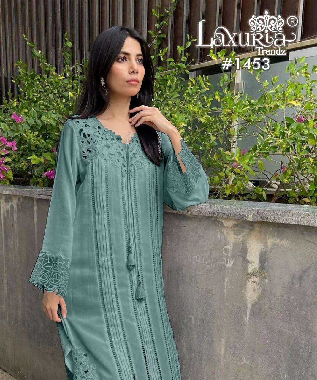 - 1453 Blue Laxuria Trendz Cut Work Pakistani Readymade Suits Dealer Ahmedabad Surat Wholesale Gujarat India Lowest Price Best Quality Buy Purchase Shipping Kurta Salwaar Kameez Also free Cash on delivery