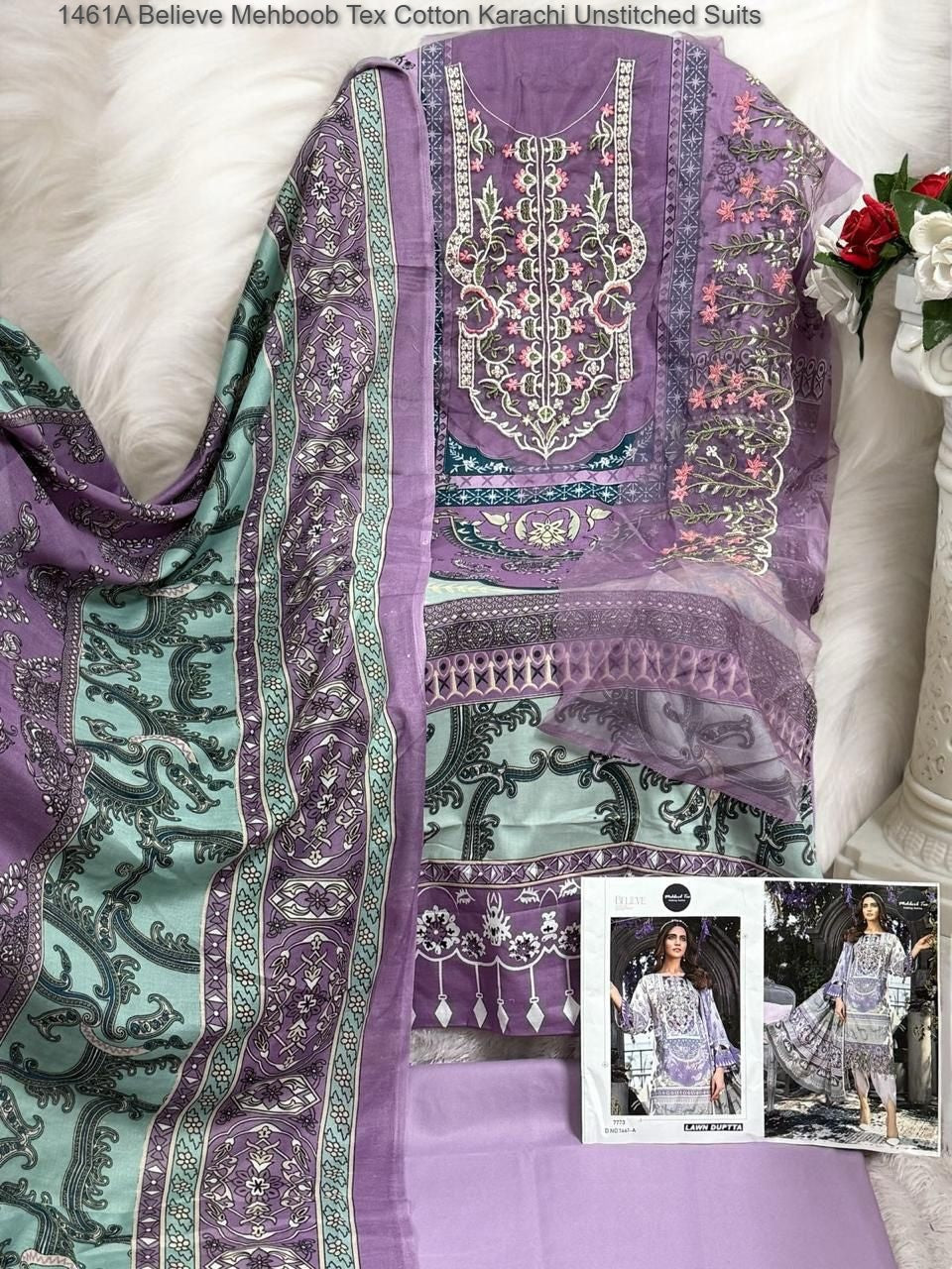 - 1461A Believe Mehboob Tex Cotton Karachi Unstitched Suits Dealer Ahmedabad Surat Wholesale Gujarat India Lowest Price Best Quality Buy Purchase Shipping Kurta Salwaar Kameez Also free Cash on delivery
