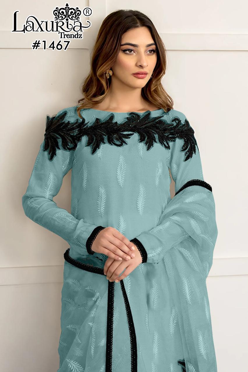 - 1467 Blue Laxuria Trendz Georgette Fox Pakistani Readymade Suits Dealer Ahmedabad Surat Wholesale Gujarat India Lowest Price Best Quality Buy Purchase Shipping Kurta Salwaar Kameez Also free Cash on delivery