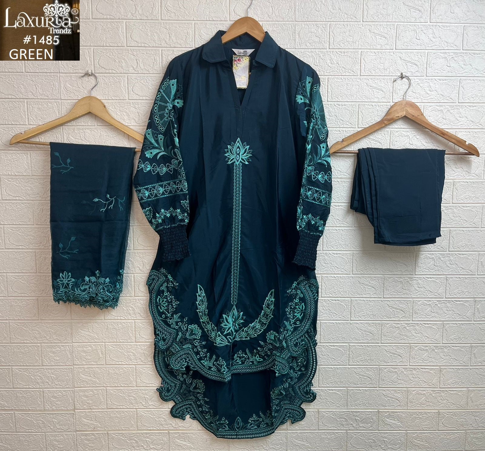 - 1485 Green Laxuria Trendz Embroidery Pakistani Salwar Suits Dealer Ahmedabad Surat Wholesale Gujarat India Lowest Price Best Quality Buy Purchase Shipping Kurta Salwaar Kameez Also free Cash on delivery