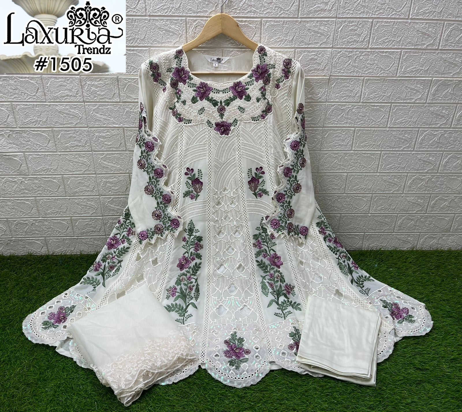 1505 White Laxuria Trendz Georgette Pakistani Readymade Suits
