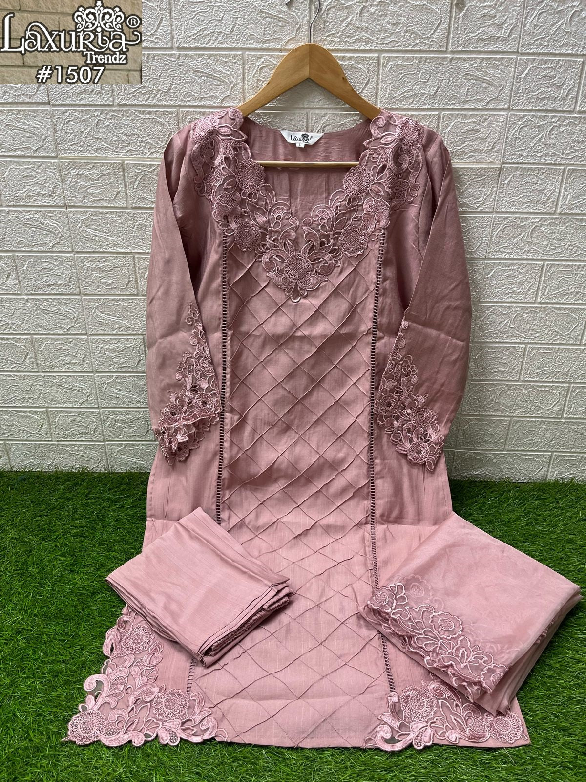 - 1507 Peach Laxuria Trendz Slub Pakistani Readymade Suits Dealer Ahmedabad Surat Wholesale Gujarat India Lowest Price Best Quality Buy Purchase Shipping Kurta Salwaar Kameez Also free Cash on delivery