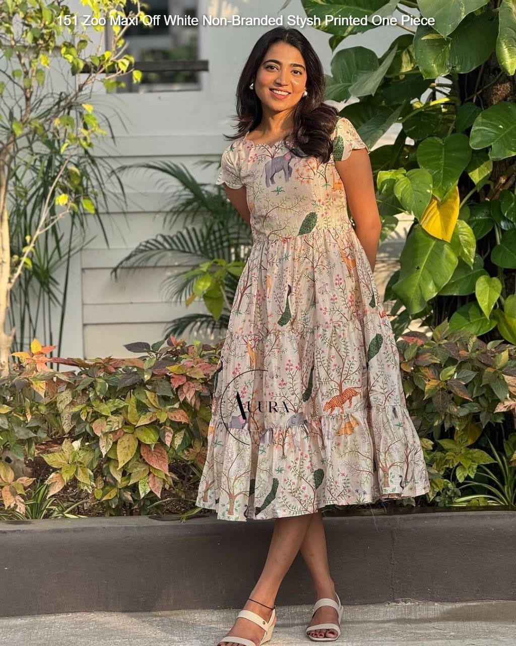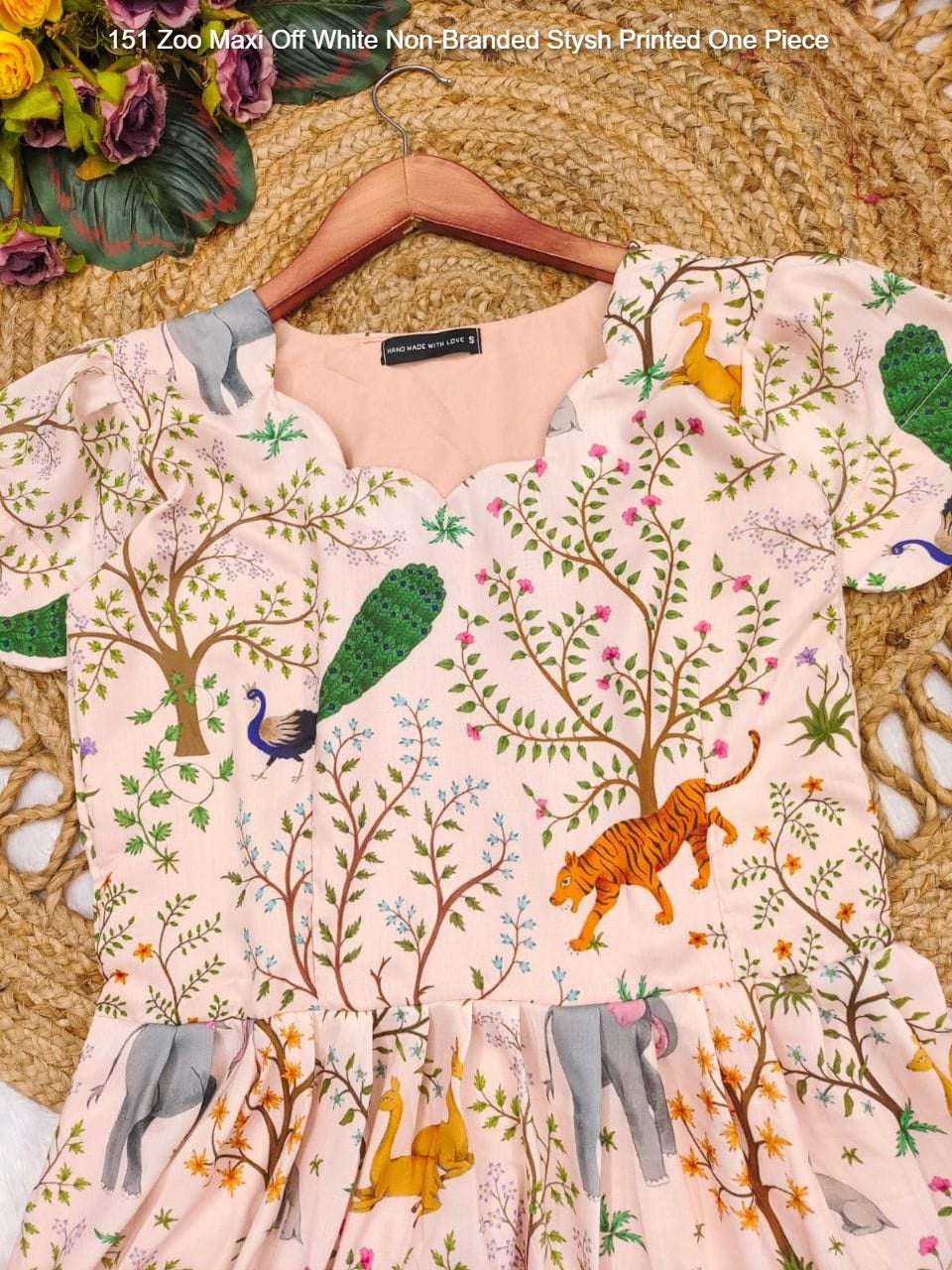 - 151 Zoo Maxi Off White Non-Branded Stysh Printed One Piece Dealer Ahmedabad Surat Wholesale Gujarat India Lowest Price Best Quality Buy Purchase Shipping Kurta Salwaar Kameez Also free Cash on delivery