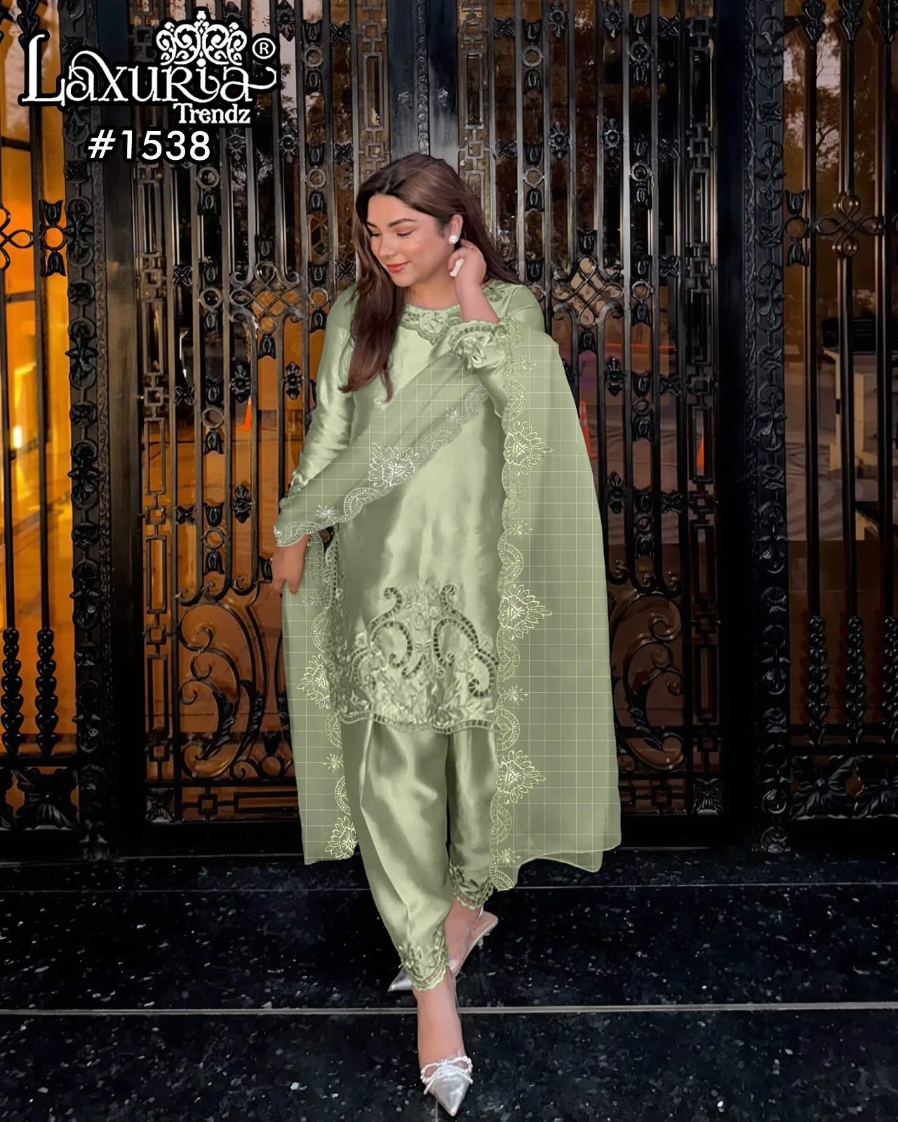 1538 Sage Green Laxuria Trendz Georgette Pakistani Readymade Suits