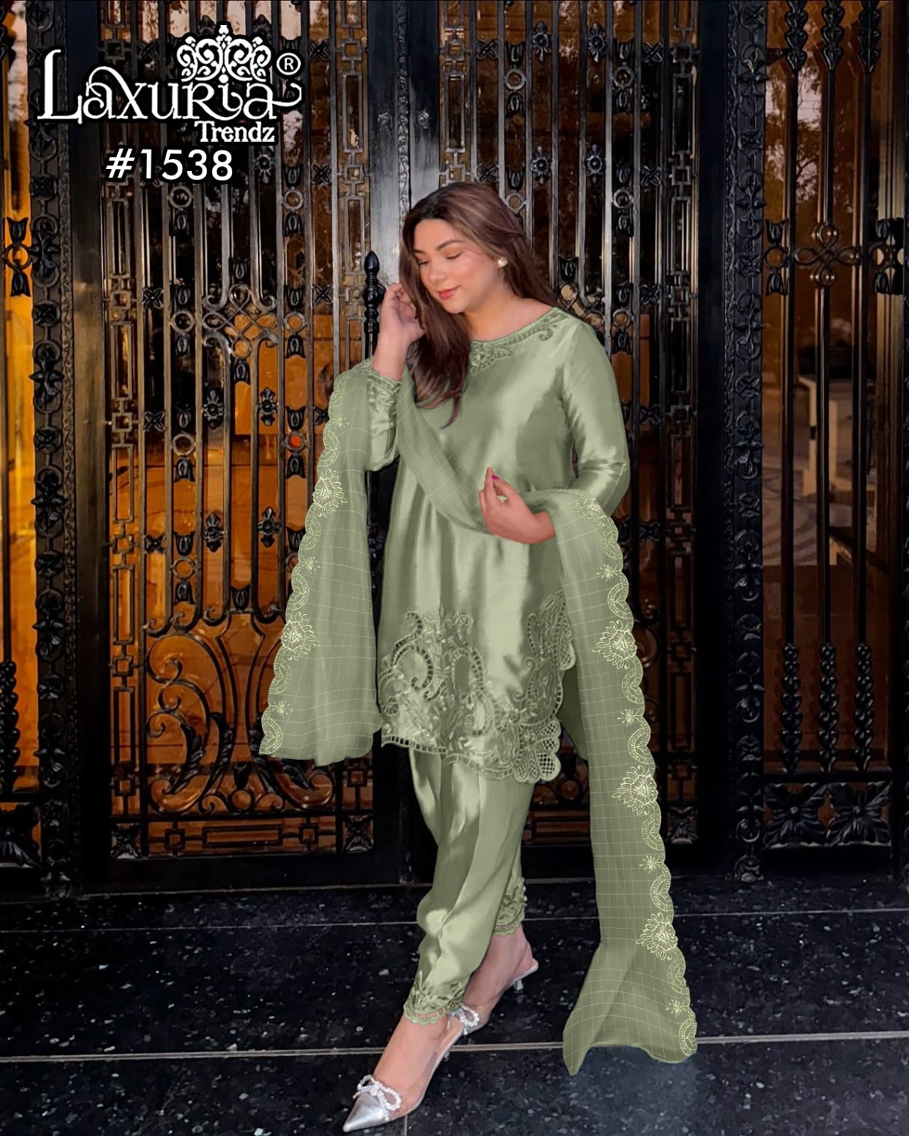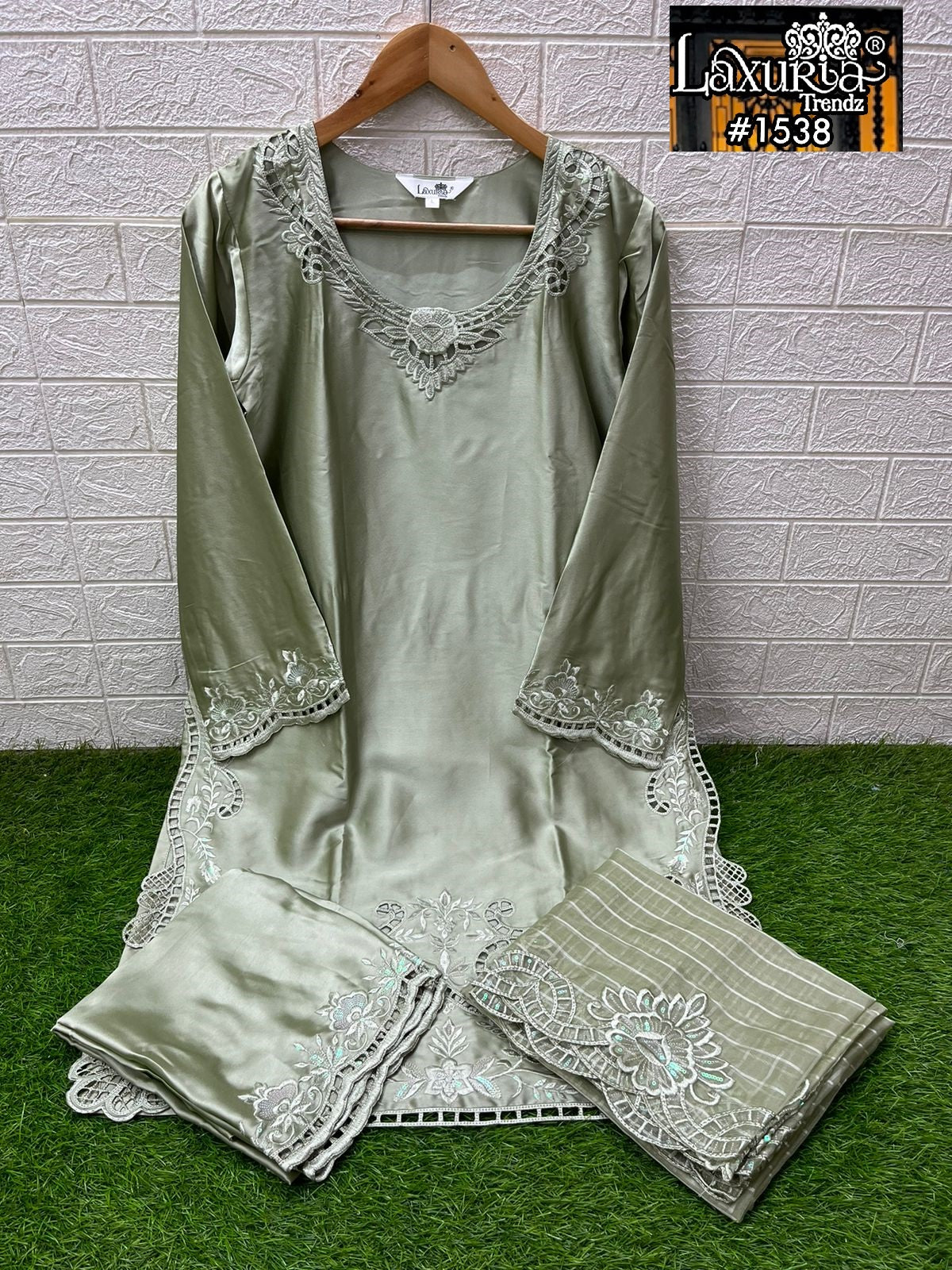 - 1538 Pista Green Laxuria Trendz Satin Pakistani Readymade Suits Dealer Ahmedabad Surat Wholesale Gujarat India Lowest Price Best Quality Buy Purchase Shipping Kurta Salwaar Kameez Also free Cash on delivery