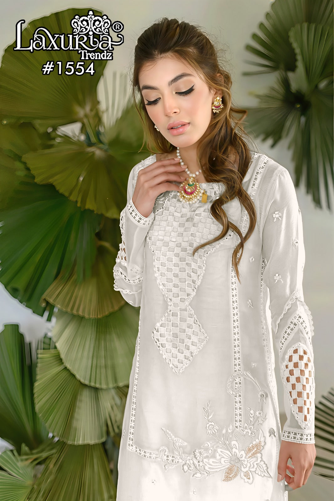 - 1554 White Laxuria Trendz Vichitrta Simmer Pakistani Readymade Suits Dealer Ahmedabad Surat Wholesale Gujarat India Lowest Price Best Quality Buy Purchase Shipping Kurta Salwaar Kameez Also free Cash on delivery