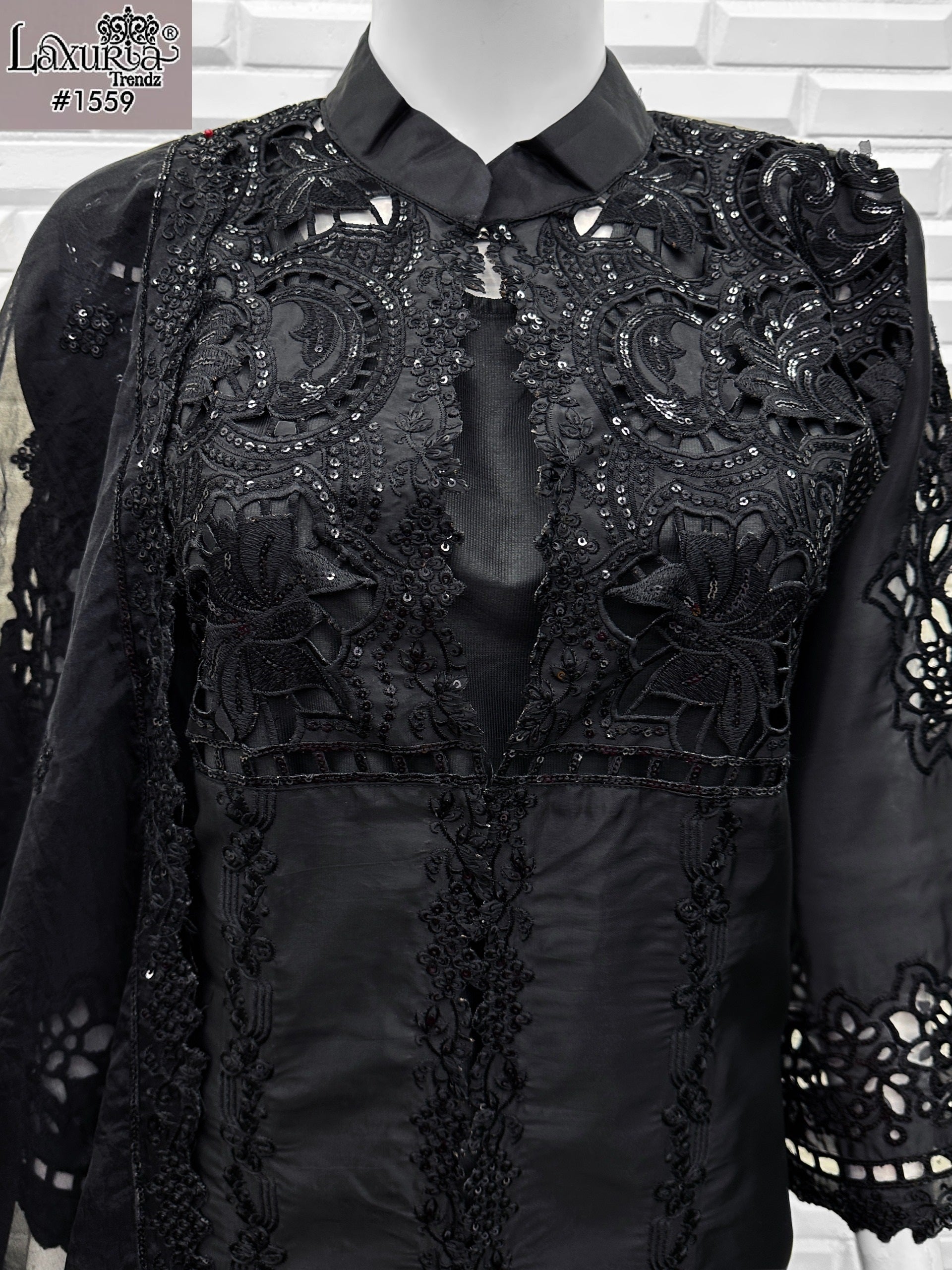 1559 Black Laxuria Trendz Organza Silk Pakistani Readymade Suits