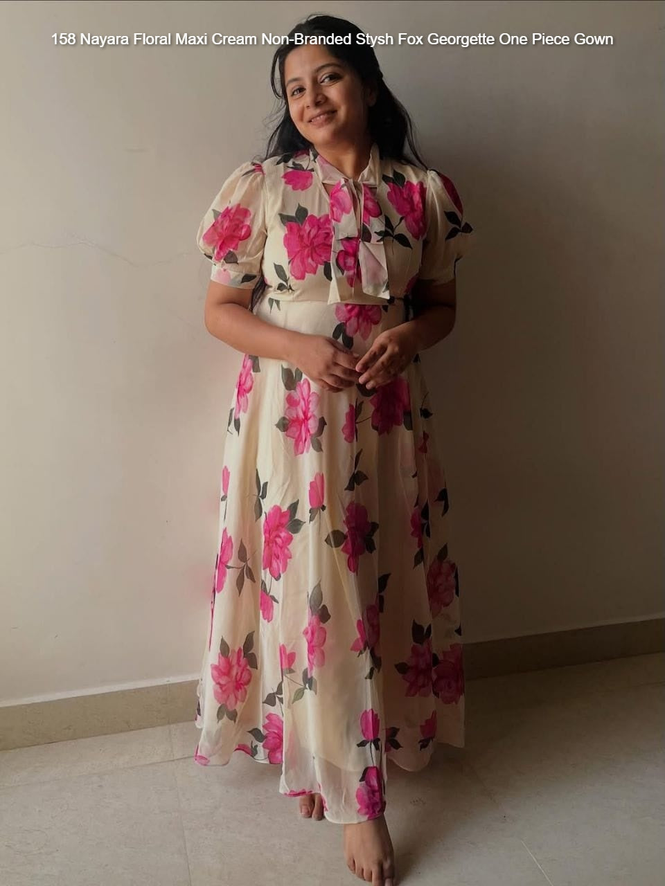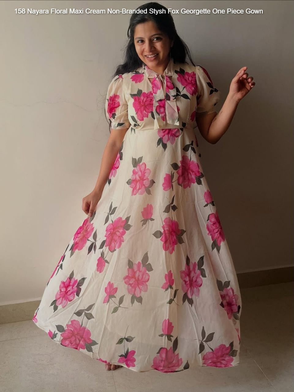 158 Nayara Floral Maxi Cream Non-Branded Stysh Fox Georgette One Piece Gown