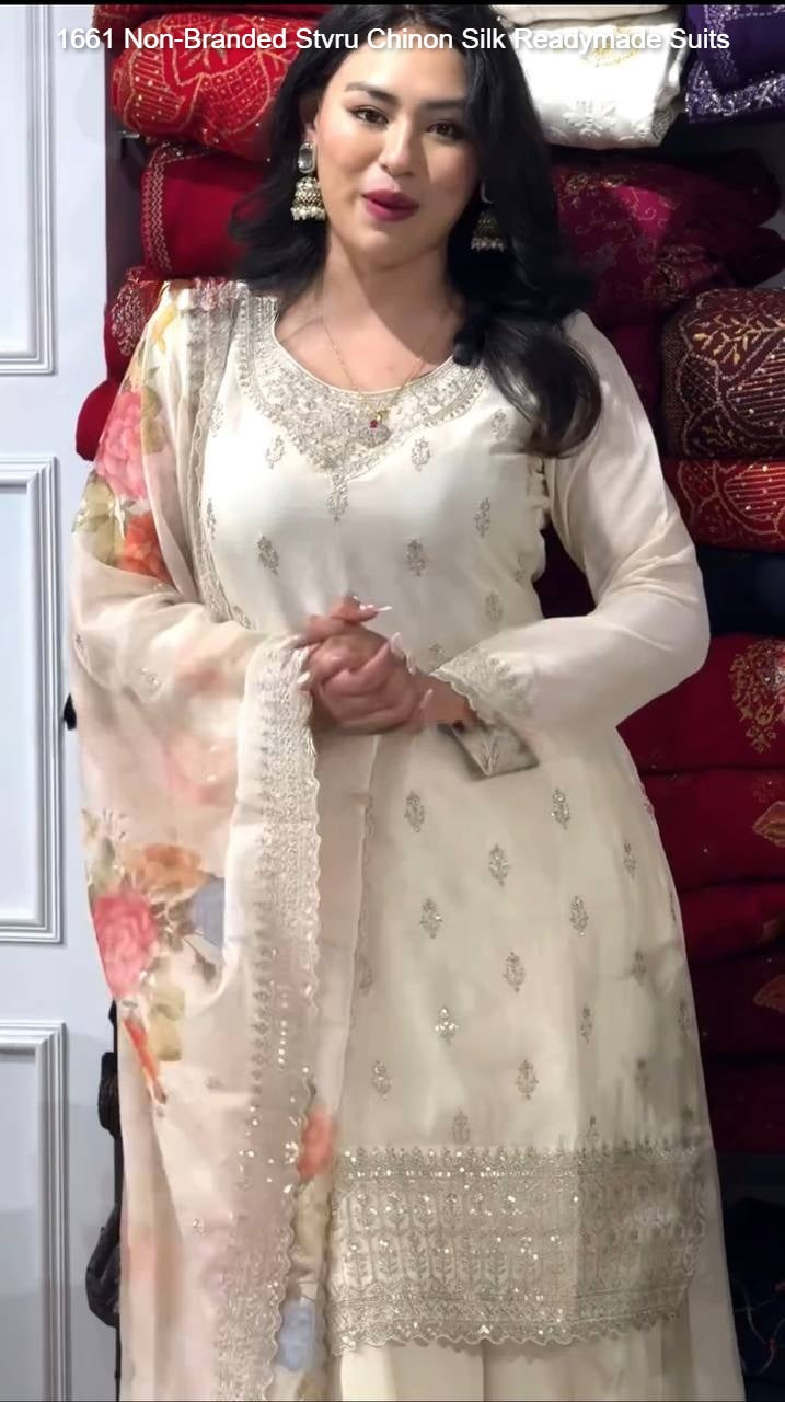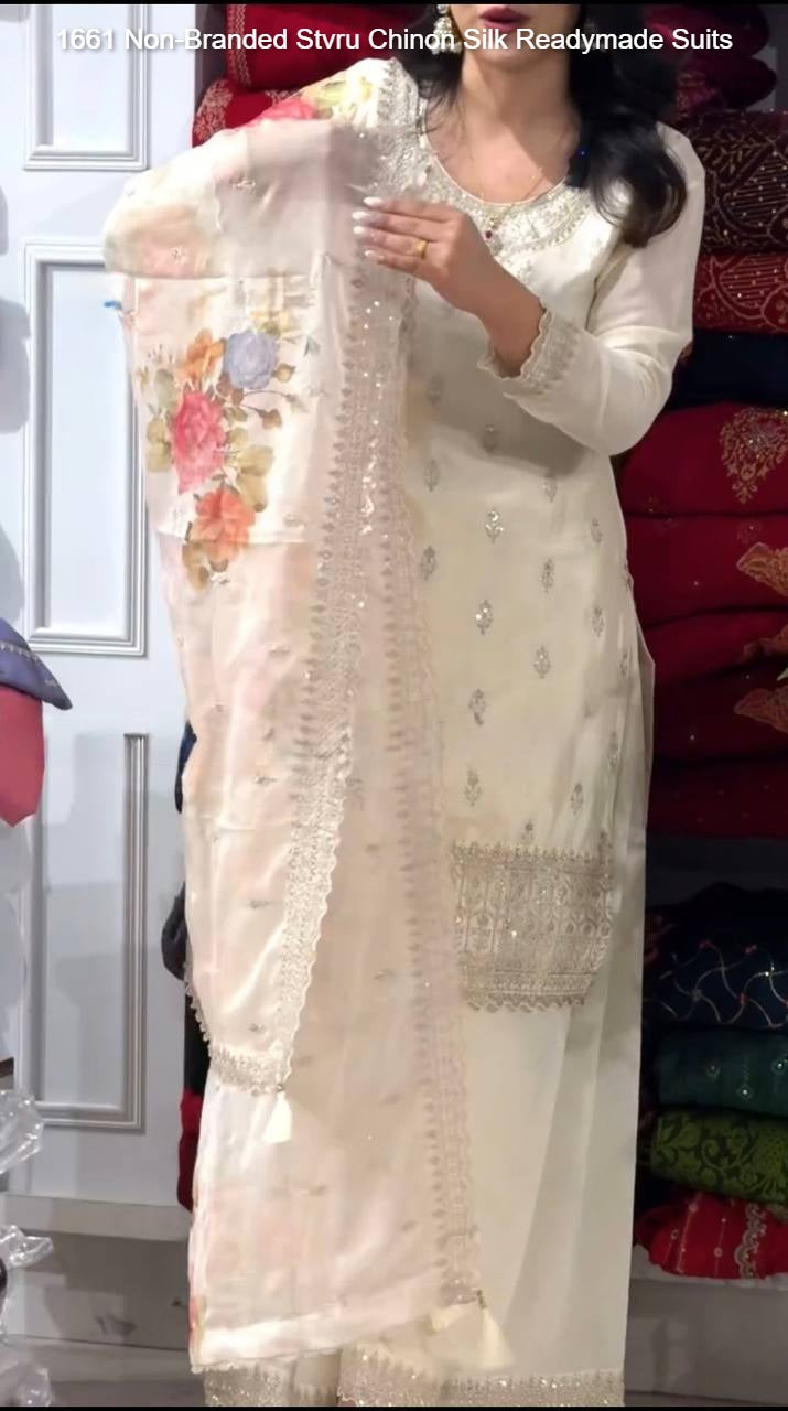 1661 Non-Branded Stvru Chinon Silk Readymade Suits