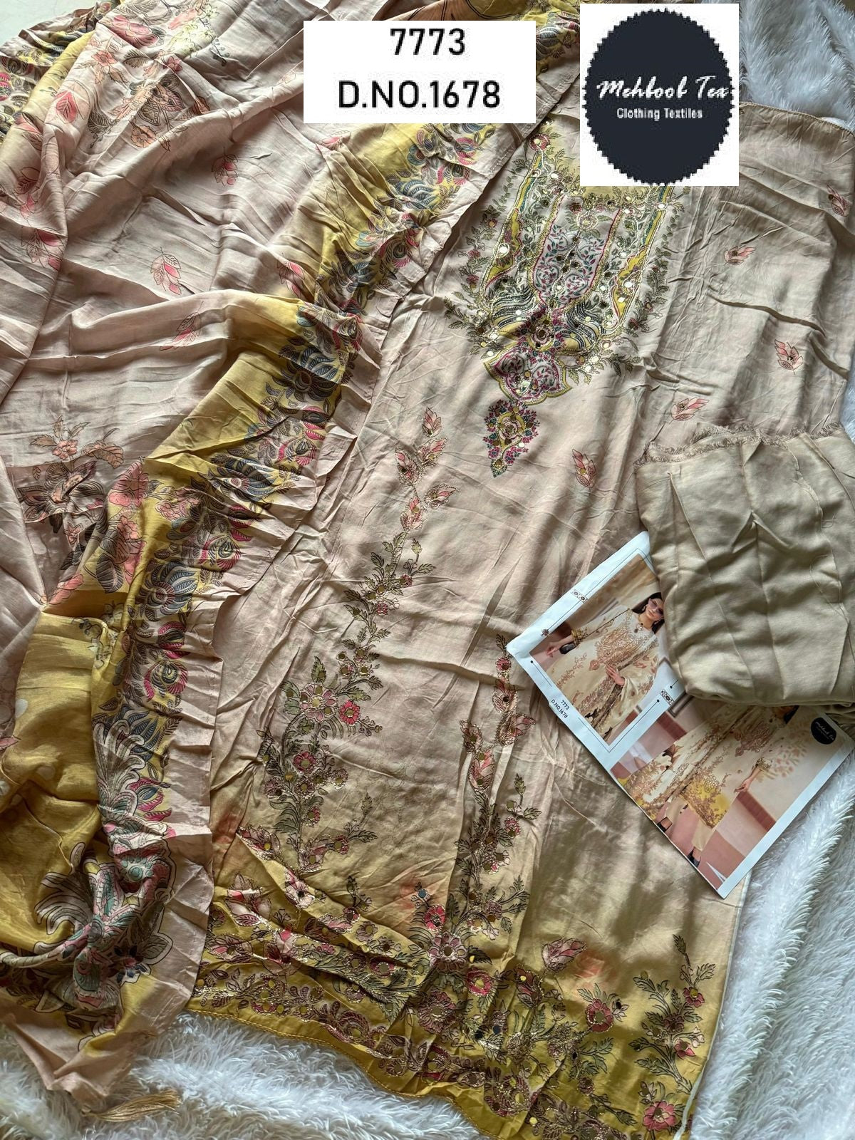 1678 Cream Mehboob Tex Printed Karachi Unstitched Suits