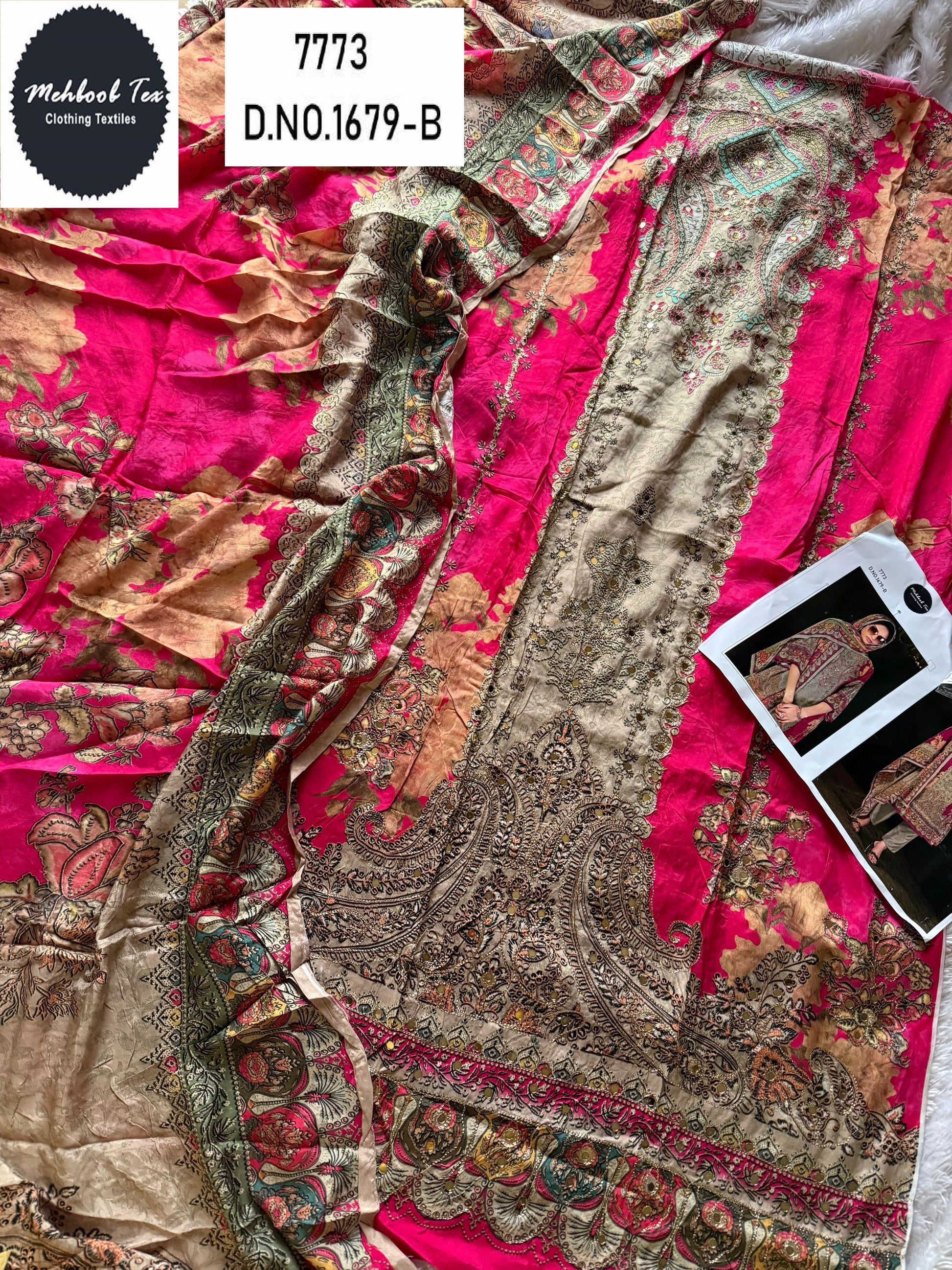 - 1679-B Mehboob Tex Printed Karachi Unstitched Suits Dealer Ahmedabad Surat Wholesale Gujarat India Lowest Price Best Quality Buy Purchase Shipping Kurta Salwaar Kameez Also free Cash on delivery